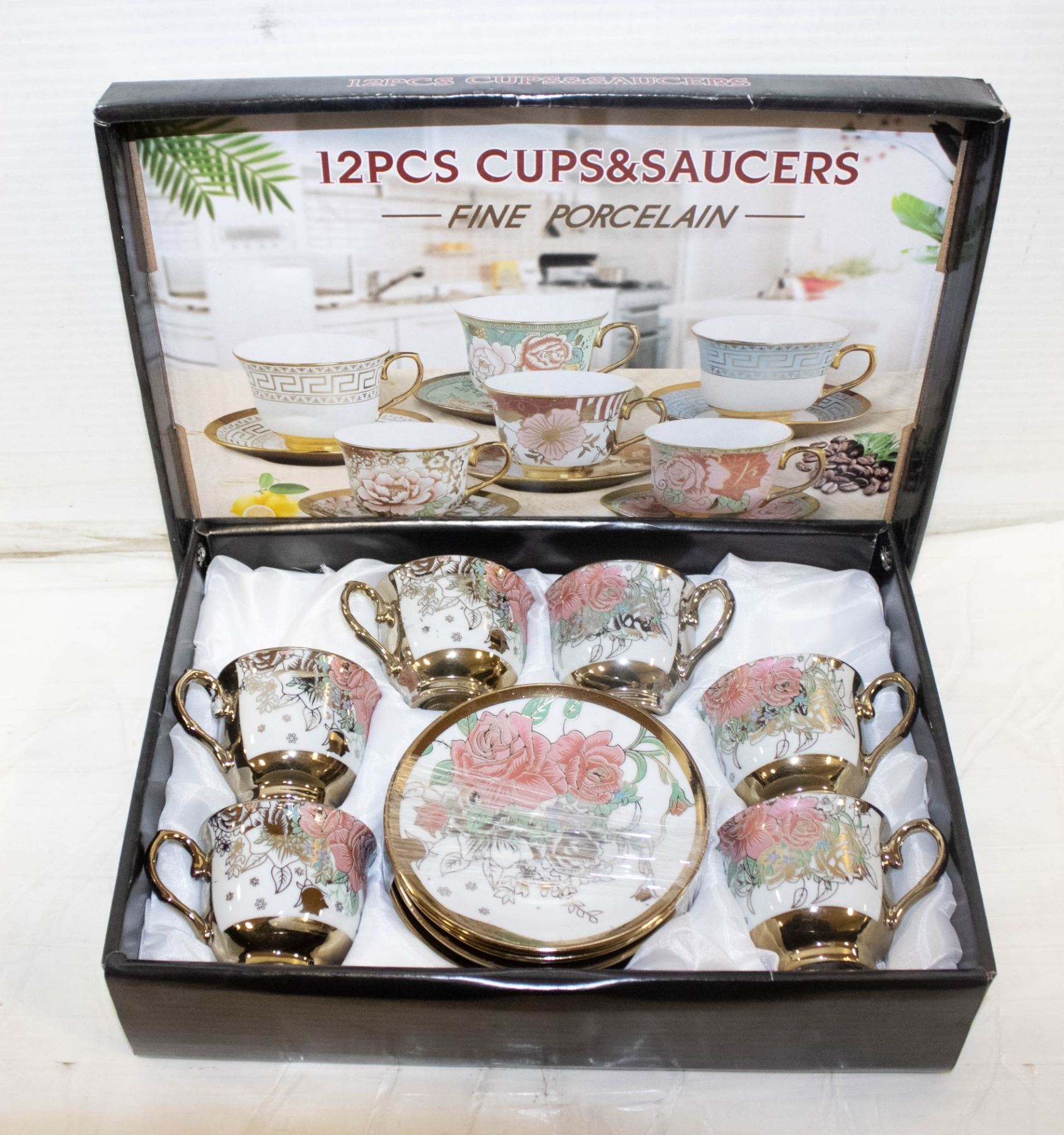 NEW 12 PC FINE PORCELAIN CUP AND SAUCER SET