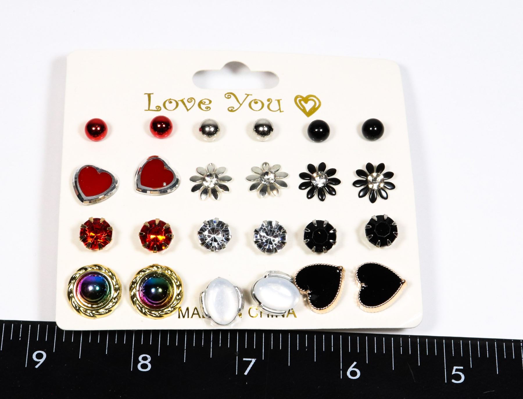 NEW 12 PC STUD EARRING SET RED, SILVER AND