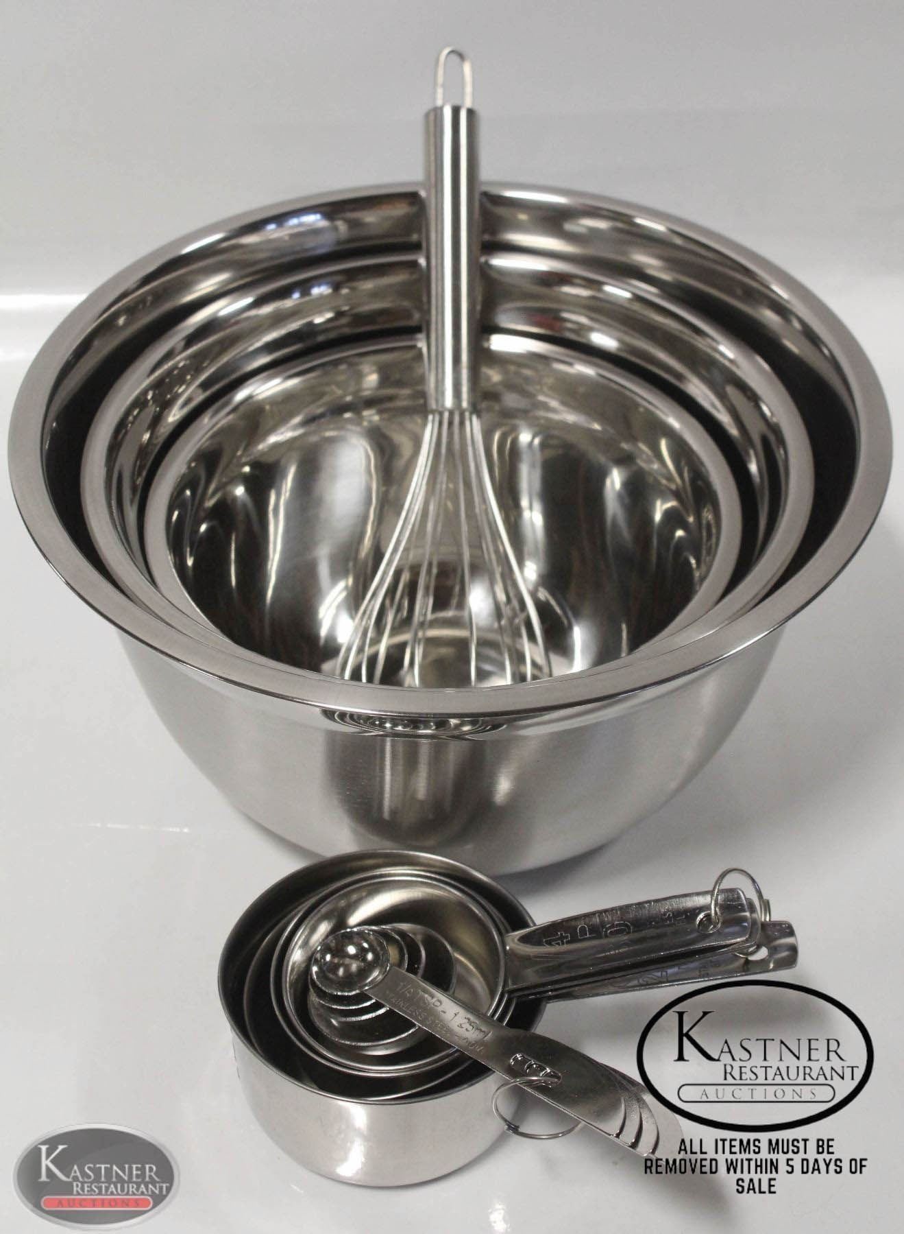 INCLUDES 3 MIXING BOWLS (1-1/2 QT, 2-1/2 QT, & 4-1/2 QT), MEASURING SPOONS (1/4 TEASPOON, 1/2 TEASPOON, 1 TEASPOON & 1 TABLESPOON), MEASURING CUPS (1/4 CUP, 1/3 CUP, 1/2 CUP, 1 CUP), & 10" WIRE WHIP. **ALL ITEMS MUST BE REMOVED BY 5PM MONDAY, SEPTEMBER 12TH, 2022. ALL REMAINING ITEMS WILL BE SUBJECT TO A $6.00 PER DAY STORAGE CHARGE. ANY ITEMS REMAINING AFTER MONDAY, SEPTEMBER 26TH, 2022 WILL BE CONSIDERED FORFEITED. NO REFUNDS WILL BE ISSUED FOR FORFEITED ITEMS.** TO SCHEDULE A PICK UP APPOINTMENT CLICK HERE