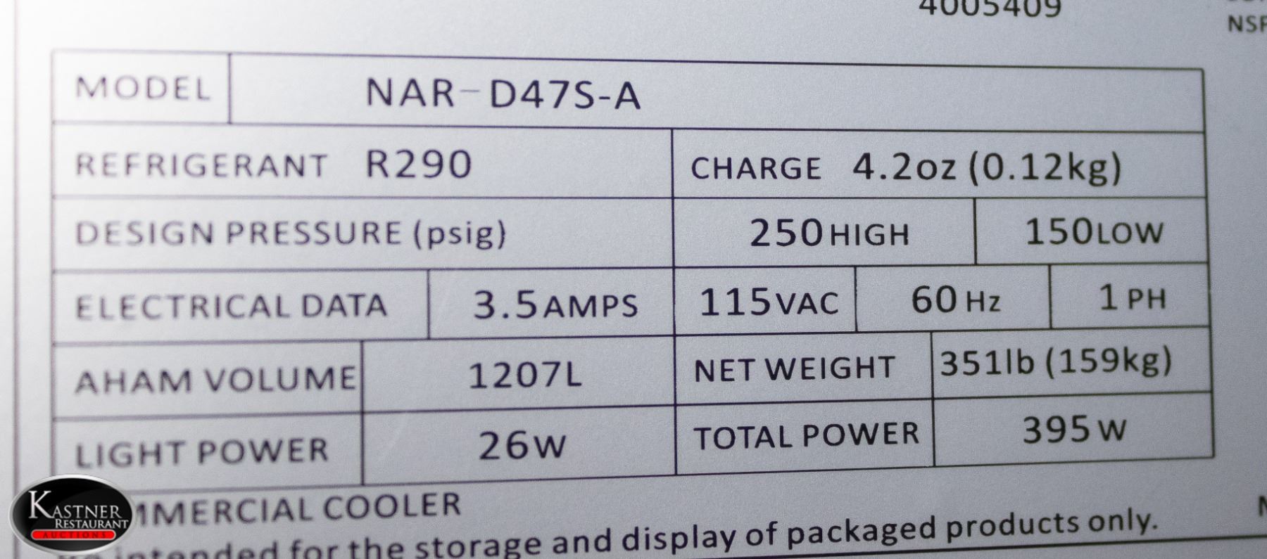 MODEL # NAR-D475-A 3.5 AMPS, 115 VAC, 60 HZ, PHASE 1, 395 WATTS