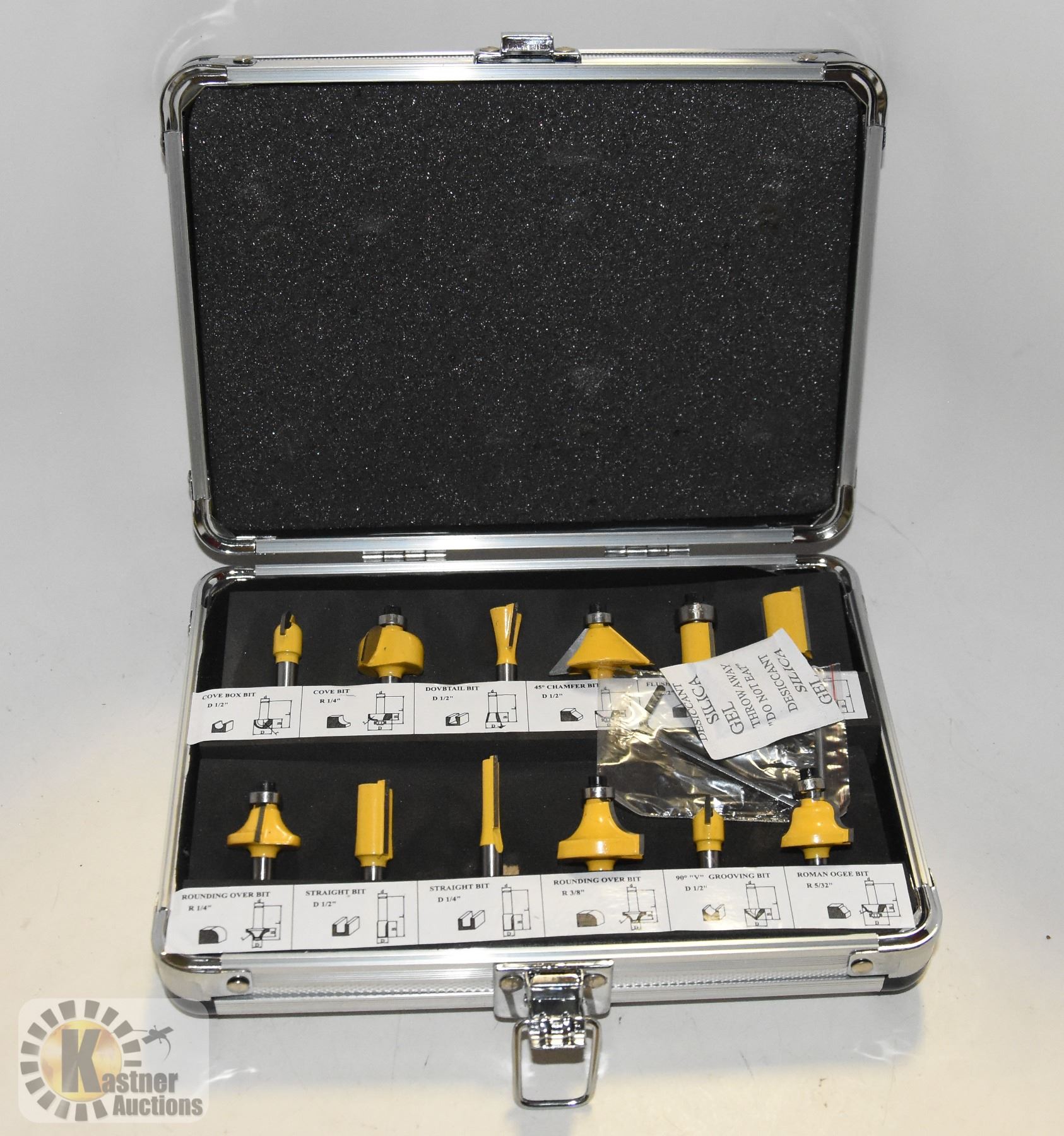 NEW 12PC CARBIDE ROUTER SET, 1/4 IN SHANK, METAL