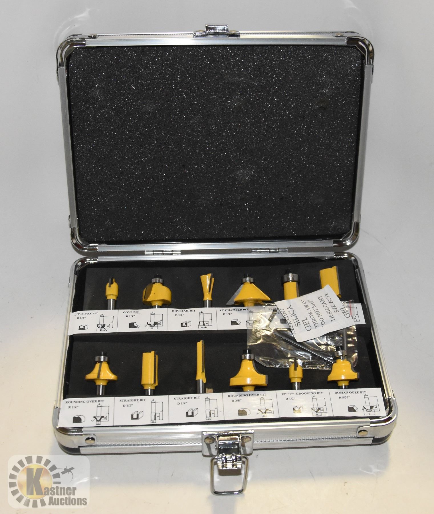 NEW 12PC CARBIDE ROUTER SET, 1/4 IN SHANK, METAL