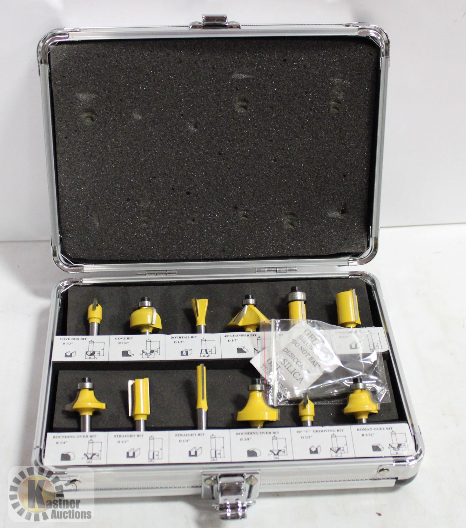 NEW 12PC CARBIDE ROUTER SET, IN SHANK, METAL BOX
