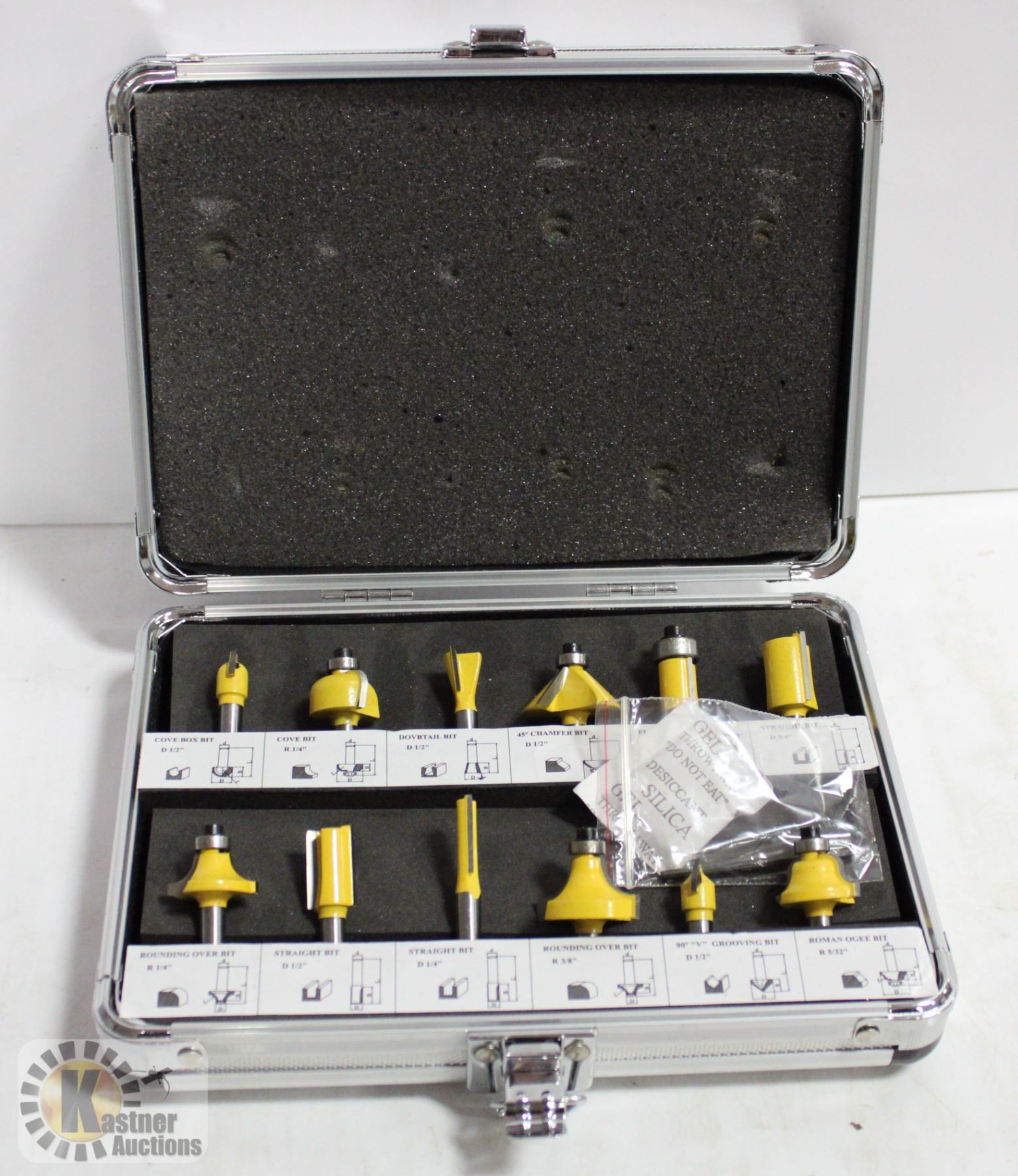 NEW 12PC CARBIDE ROUTER SET, IN SHANK, METAL BOX