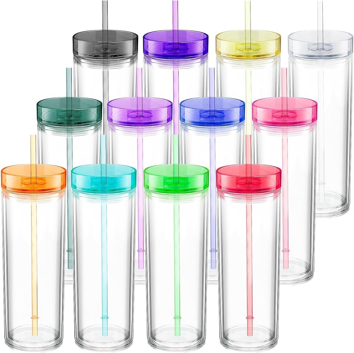 AND STRAWS, DOUBLE WALL INSULATED, REUSABLE CLEAR TUMBLERS. AMZ SES