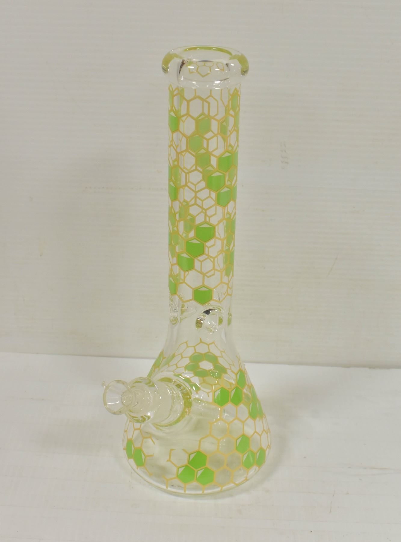 NEW 13.5" GLASS COOL GREEN HONEYCOMB BONG
