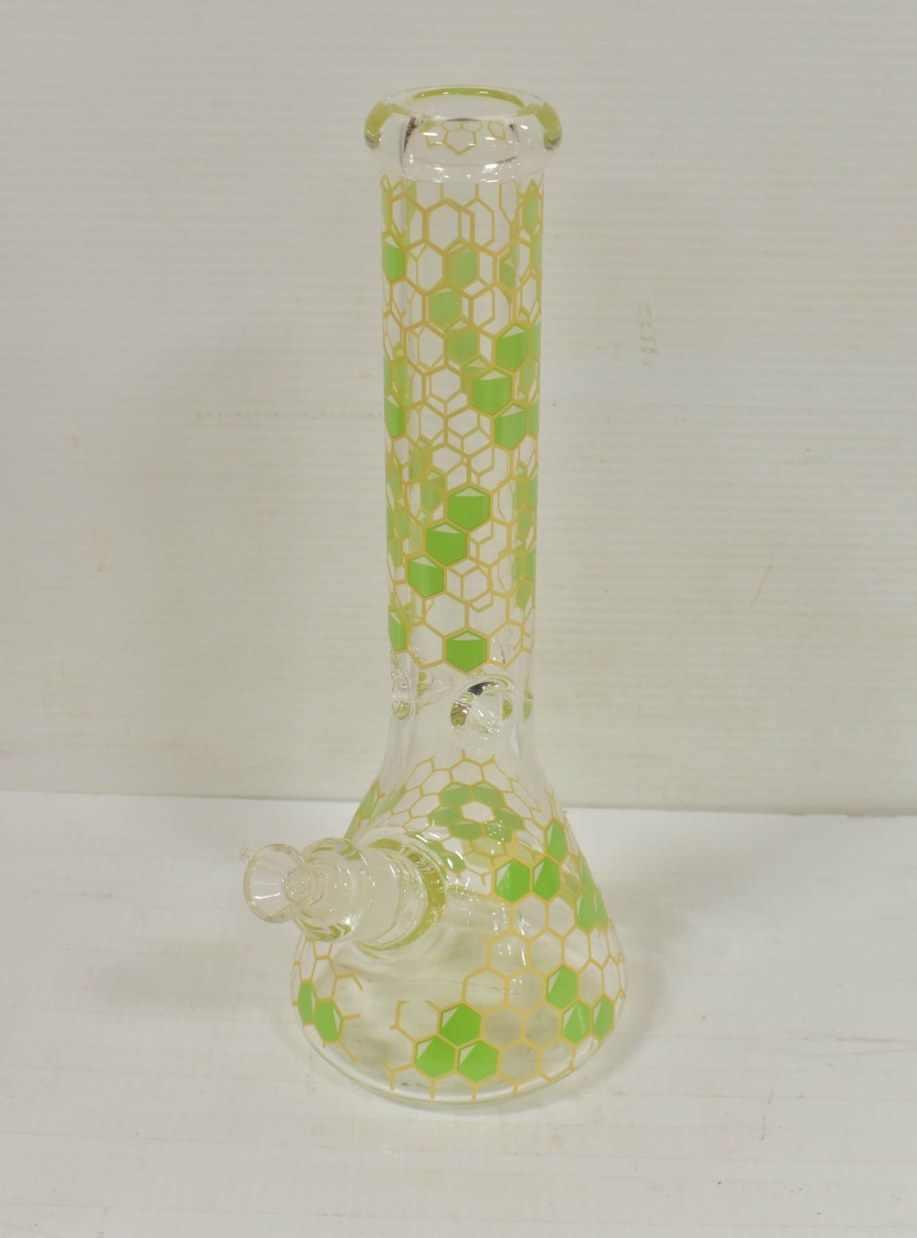 NEW 13.5" GLASS COOL GREEN HONEYCOMB BONG