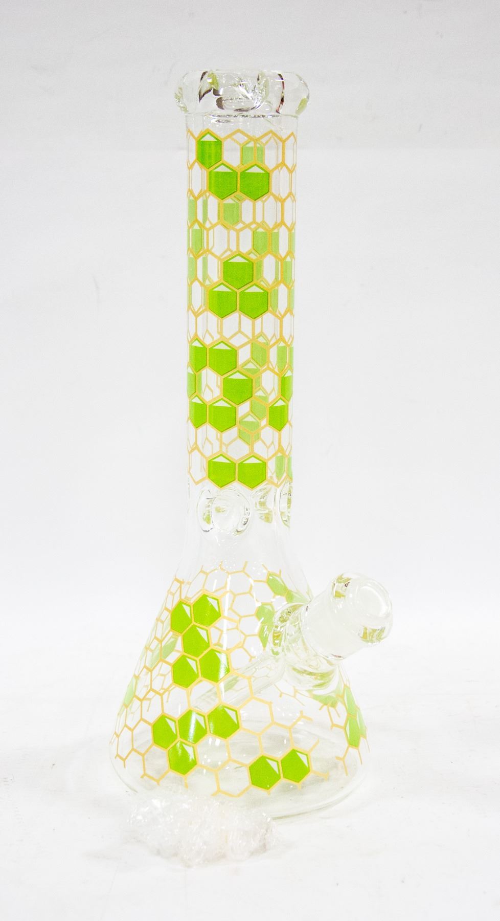 NEW 14" GREEN & CLEAR HONEYCOMB BEAKER BONG