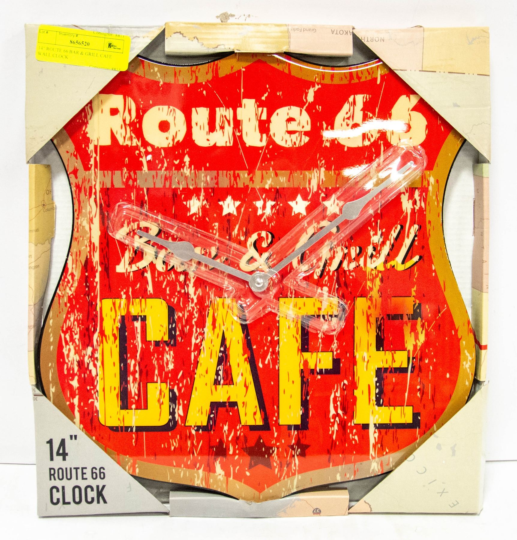 NEW 14" ROUTE 66 BAR & GRILL CAFE WALL CLOCK