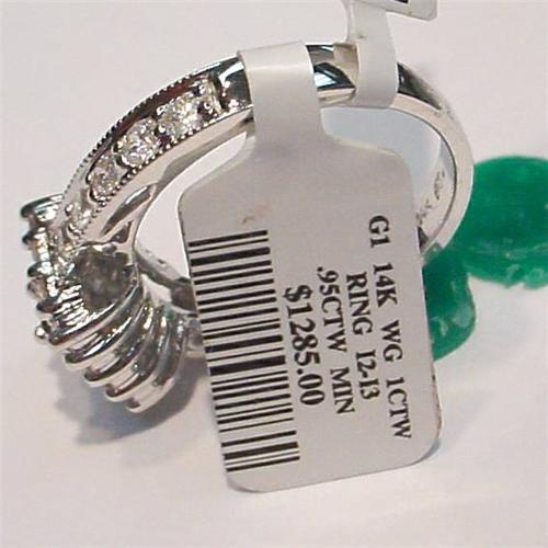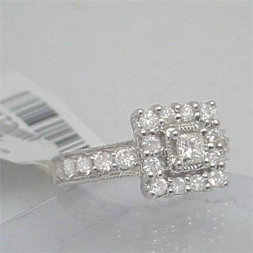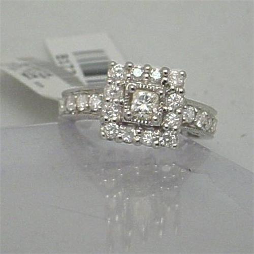 [137267476] 14 Karat White Gold sets these Princess and Round Cut Genuine Diamonds in this spectacular ring. Diamonds are I2-I3 and weigh 1CTW. <P>One large Princess Cut Diamond is surrounded by 12 Round Cut Diamonds. Plus there are four diamonds set in each side, on the band, for extra sparkle and elegance. This ring would make a gorgeous Engagement or Anniversary ring. <p> STORE TAGS STILL ATTACHED, READ: $1285.00 <P> WE WILL SIZE THIS RING FOR YOU AT NO ADDITIONAL CHARGE. <p> Our Gold Factory recently purchased the entire inventory from a Jewelry Firm that went out of business. We were able to purchase these items at a huge savings, which we now pass on to you! Most of these pieces are one of a kind. We have not factored in the increased price of Gold, so this is a double value! <p> Please note: our merchandise is guaranteed 100% to your satisfaction. If you don?t LOVE this item, simply return it for a complete refund of your purchase price. Our feedback is 100% positive, so you can shop with confidence, knowing that your satisfaction is our primary concern. <p> Please click on the ?Calculate Shipping? button below to see your actual shipping charges. Insurance is included in our shipping charges.