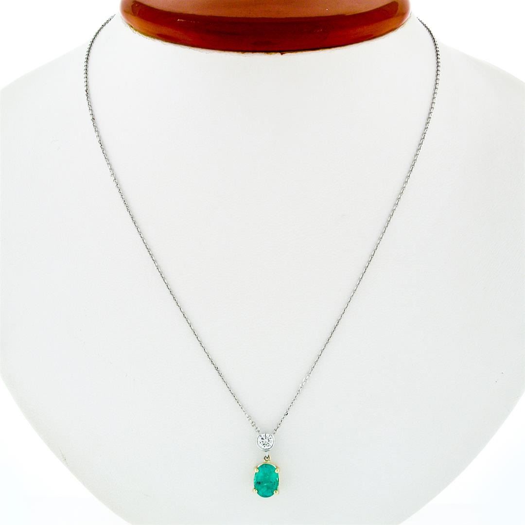 NEW 14K TT Gold 1.44 ctw Oval Emerald & Round Diamond Drop Dangle Pendant Neckla