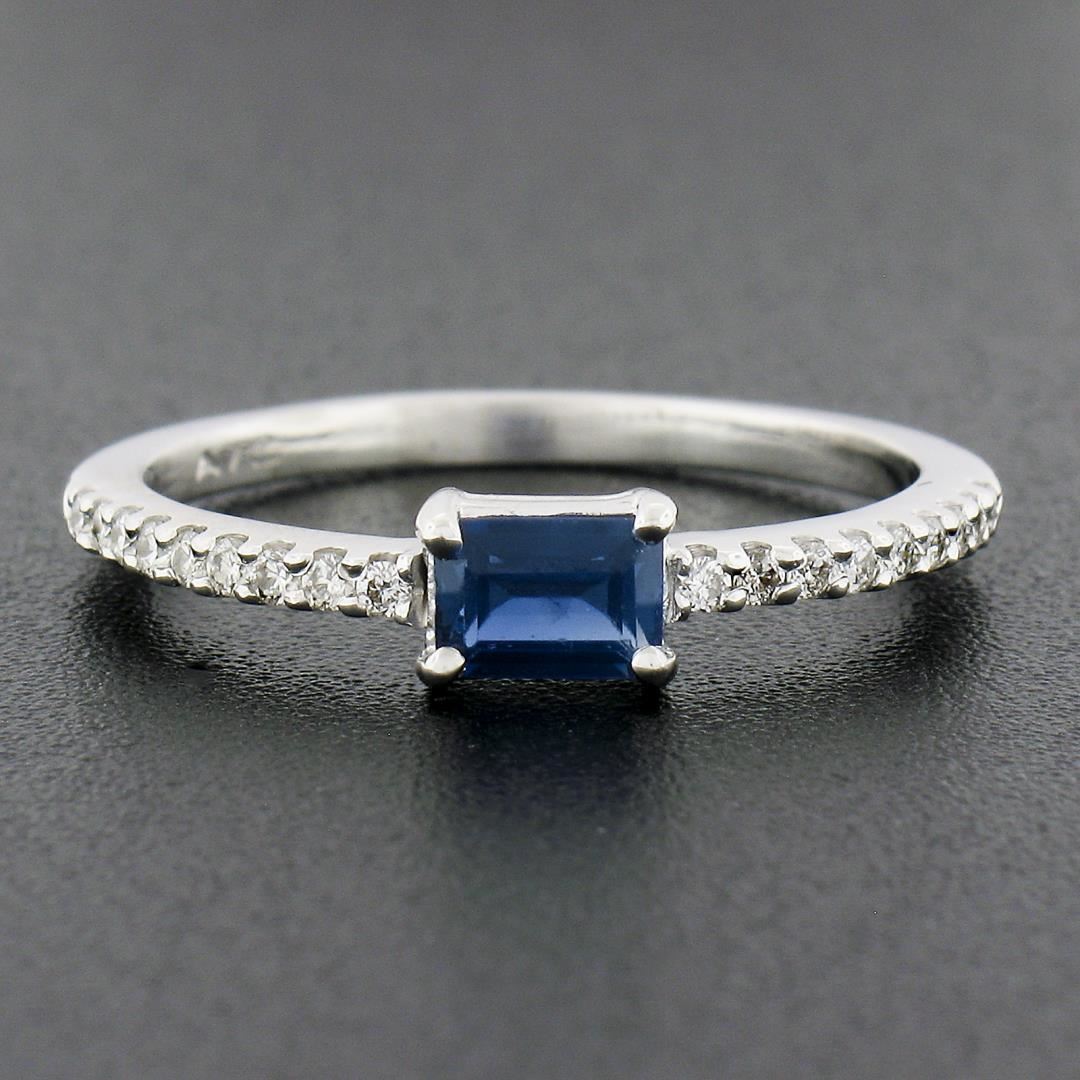 NEW 14K White Gold 0.62ct Rectangular Step Cut Sapphire Solitaire & Diamond Ring