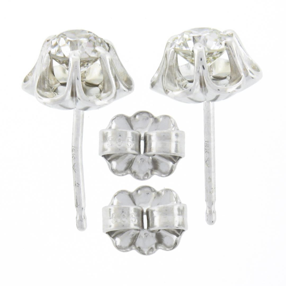 A new solid 14k white gold flower stud earrings, with 2 old european cut natural diamonds (H/I - VS2/SI1 ; 0.76ctw). The earrings measure approximately 7.9mm in diameter and weigh a total of 1.56 grams.