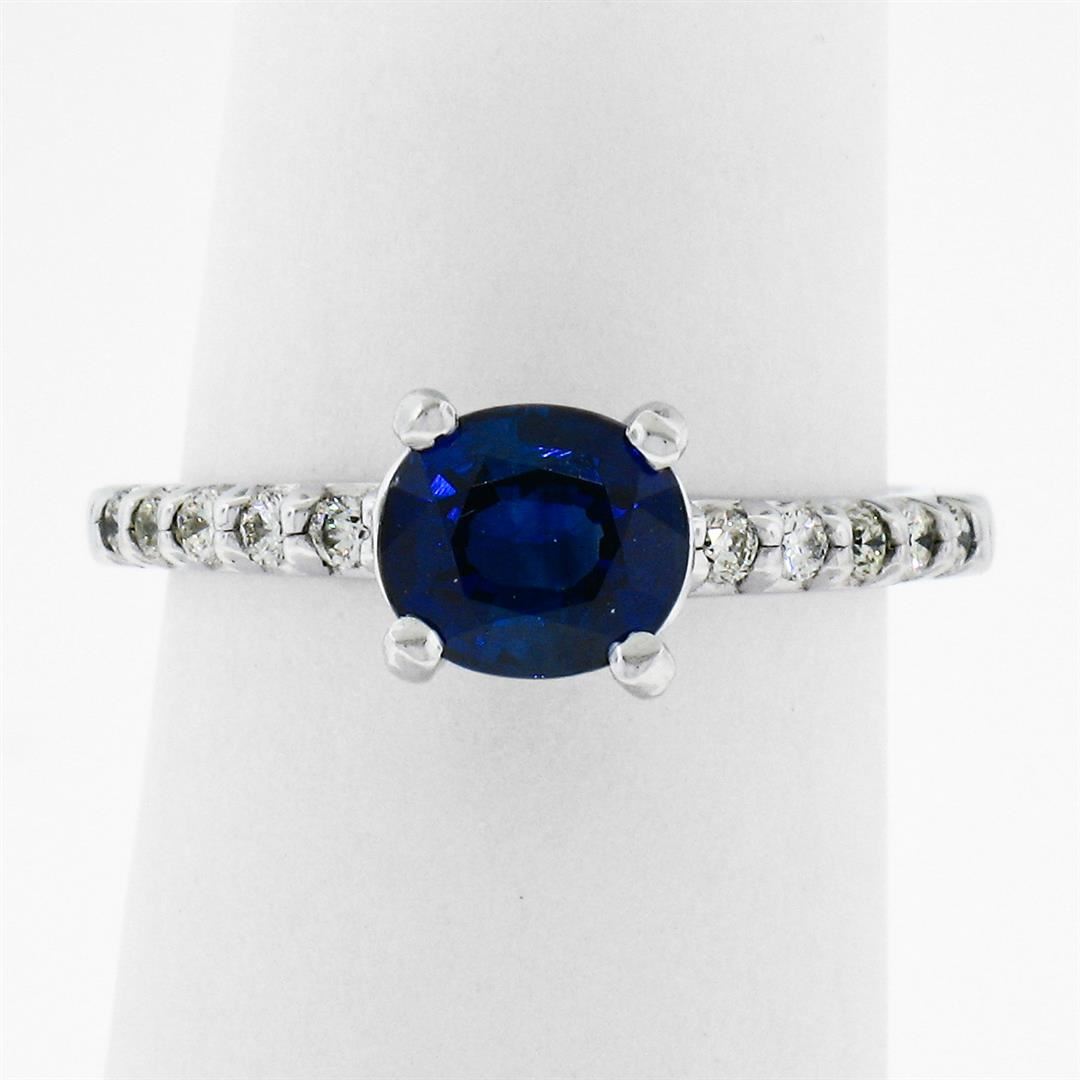NEW 14K White Gold 1.30 ctw GIA Oval Sapphire Solitaire & Diamond Engagement Rin