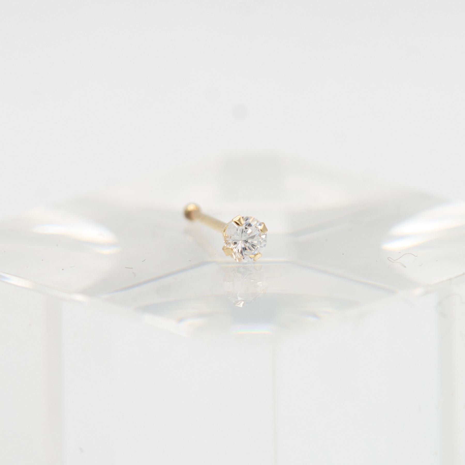 NEW 14K YELLOW GOLD NOSE PIN/STUD W/ACCENT STONE