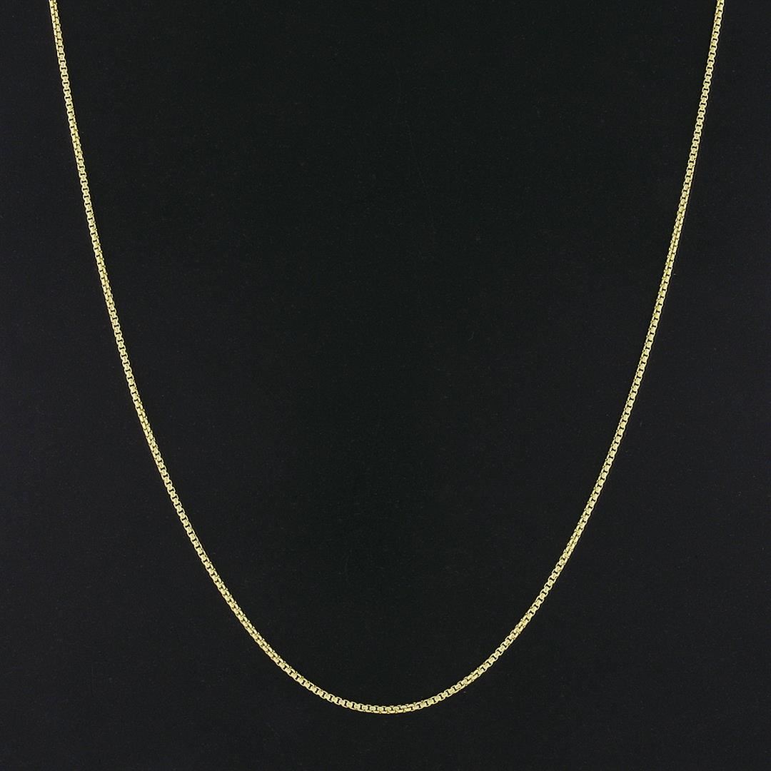 A new solid 14k yellow gold chain necklace. It weighs a total of 6.71 grams, measures 1.55mm wide, and measures 18 inches in length.