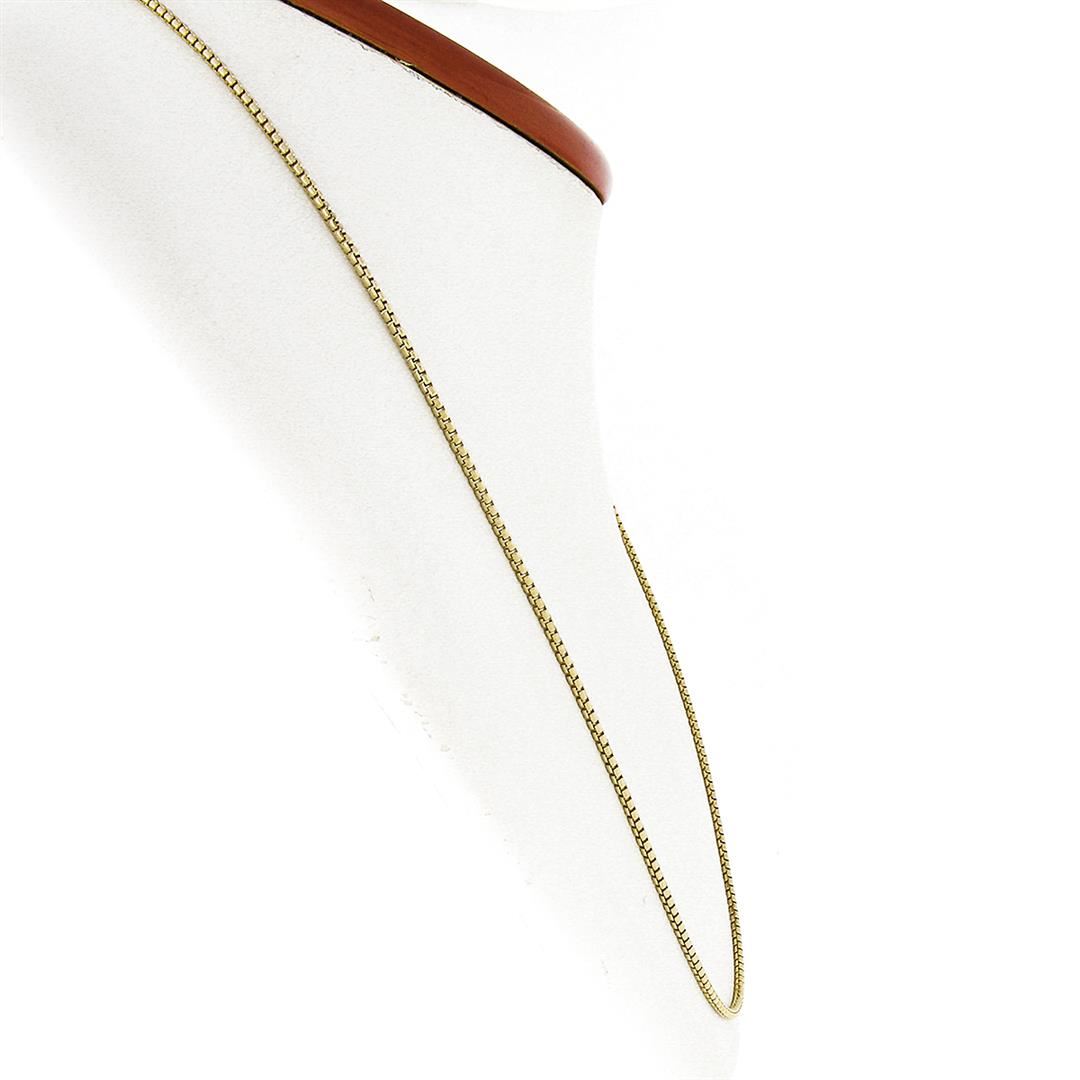 A new solid 14k yellow gold box link chain necklace. It weighs a total of 8.75 grams, measures 1.6mm wide, and measures 24 inches in length.