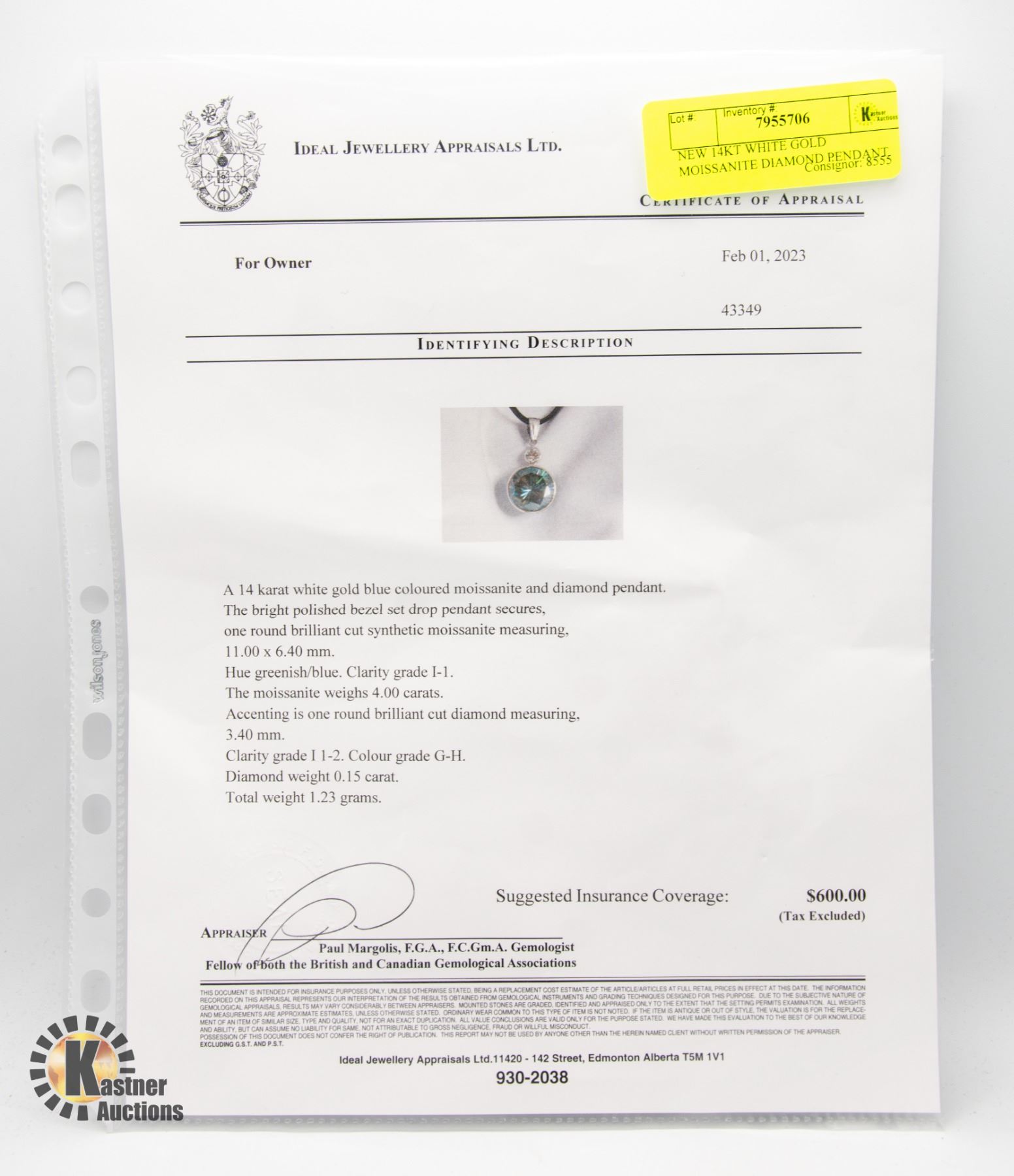 APPRAISED FEB 1 2023, COMES WITH APPRAISAL. BRILLIANT CUT DIAMOND AND MOISSANITE **ALL ITEMS MUST BE REMOVED BY 5PM SATURDAY, MAY 6TH 2023. ALL REMAINING ITEMS WILL BE SUBJECT TO A $6.00 PER DAY STORAGE CHARGE. ANY ITEMS REMAINING AFTER MONDAY, MAY 22ND, 2023 WILL BE CONSIDERED FORFEITED. NO REFUNDS WILL BE ISSUED FOR FORFEITED ITEMS. TO SCHEDULE A PICK UP APPOINTMENT CLICK HERE