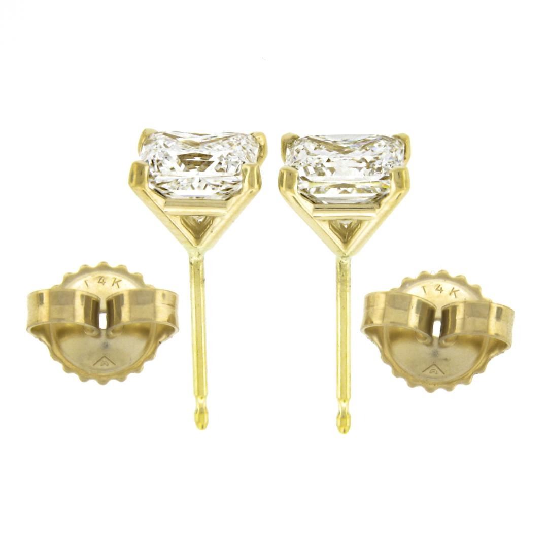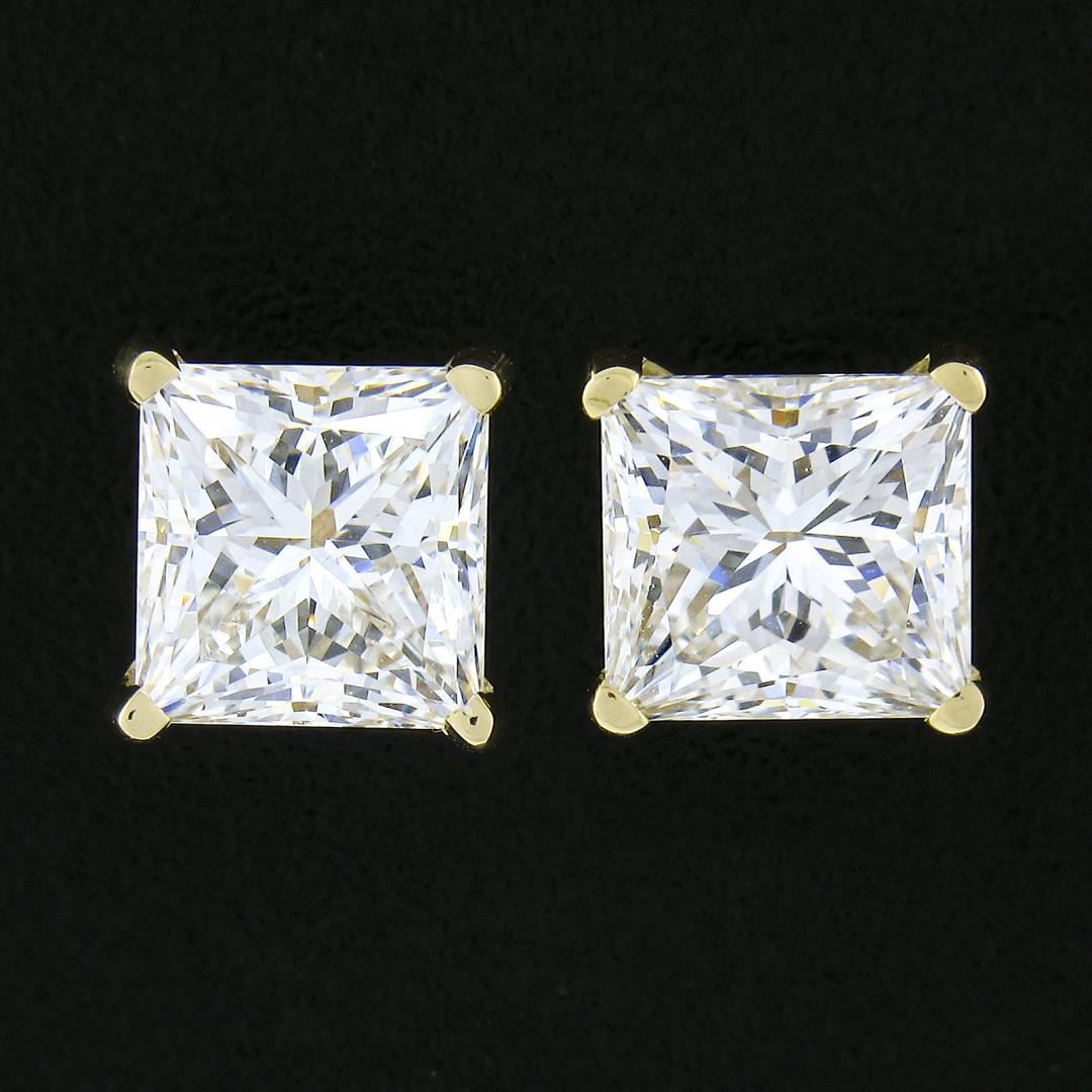 A new solid 14k yellow gold stud earrings, with 2 GIA graded square princess cut natural diamonds ( H/I - VS1/VS2 ; 2.14ctw). The earrings measure approximately 8.6x8.6mm and weigh a total of 1.54 grams. Comes with all original relevant certifications.