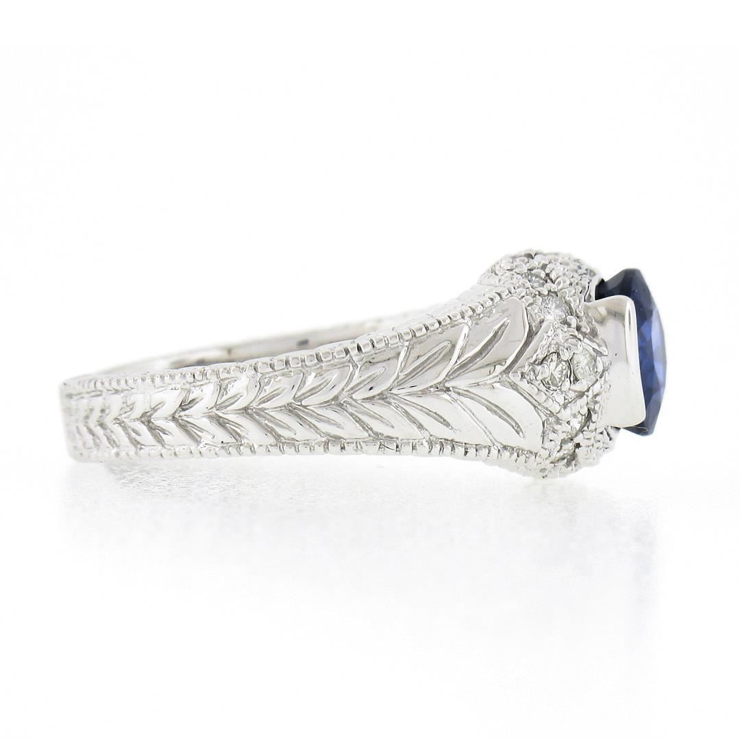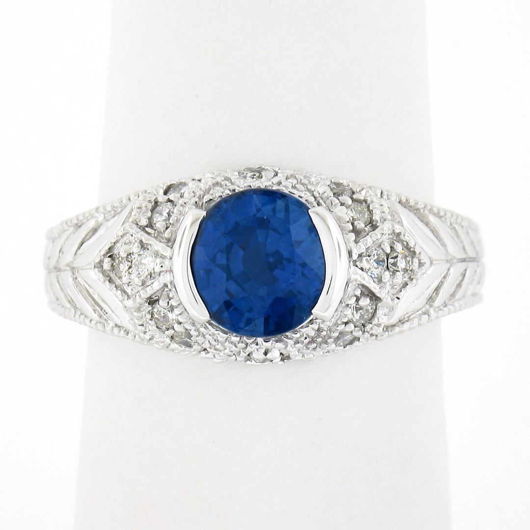 NEW 14k Gold GIA Half Bezel Round Sapphire w/ Diamond Milgrain & Wheat Work Ring