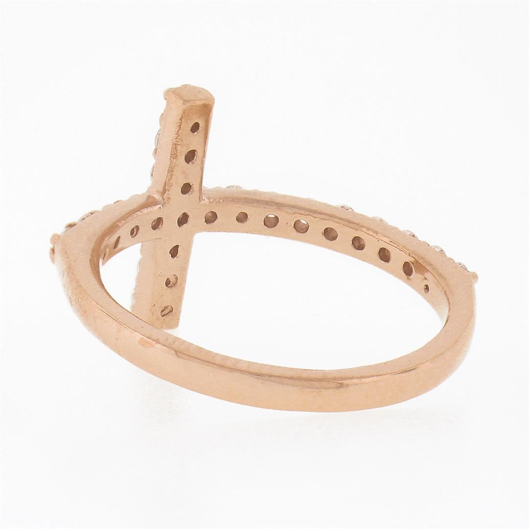 A new solid 14k rose gold cross ring with 20 round brilliant cut natural diamonds (G/H - VS1/VS2 ; 0.40ctw). The ring is size 6.5, weighs a total of 2.65 grams, and measures 13.30mm wide.