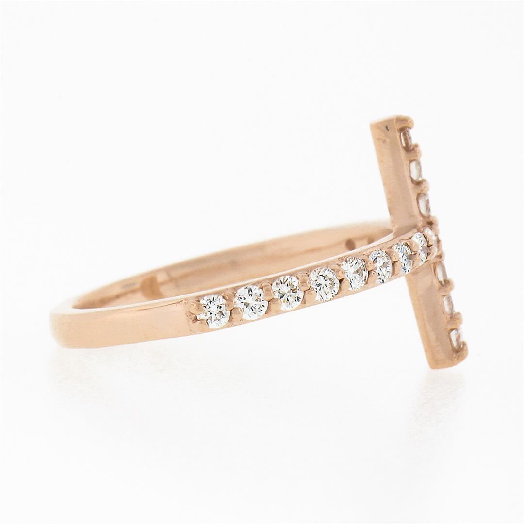 A new solid 14k rose gold cross ring with 20 round brilliant cut natural diamonds (G/H - VS1/VS2 ; 0.40ctw). The ring is size 6.5, weighs a total of 2.65 grams, and measures 13.30mm wide.