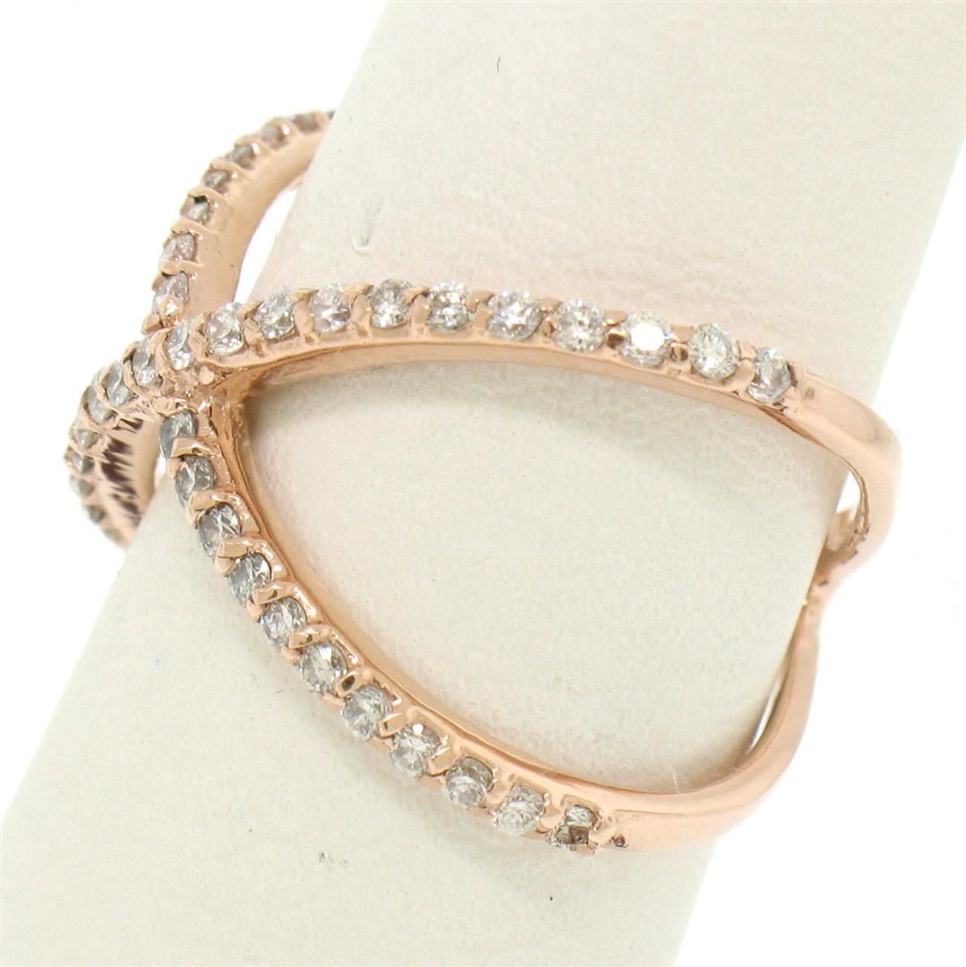 NEW 14k Rose Gold 0.50 ctw 45 Round Brilliant Diamond Simple X Ex Cross Band Rin