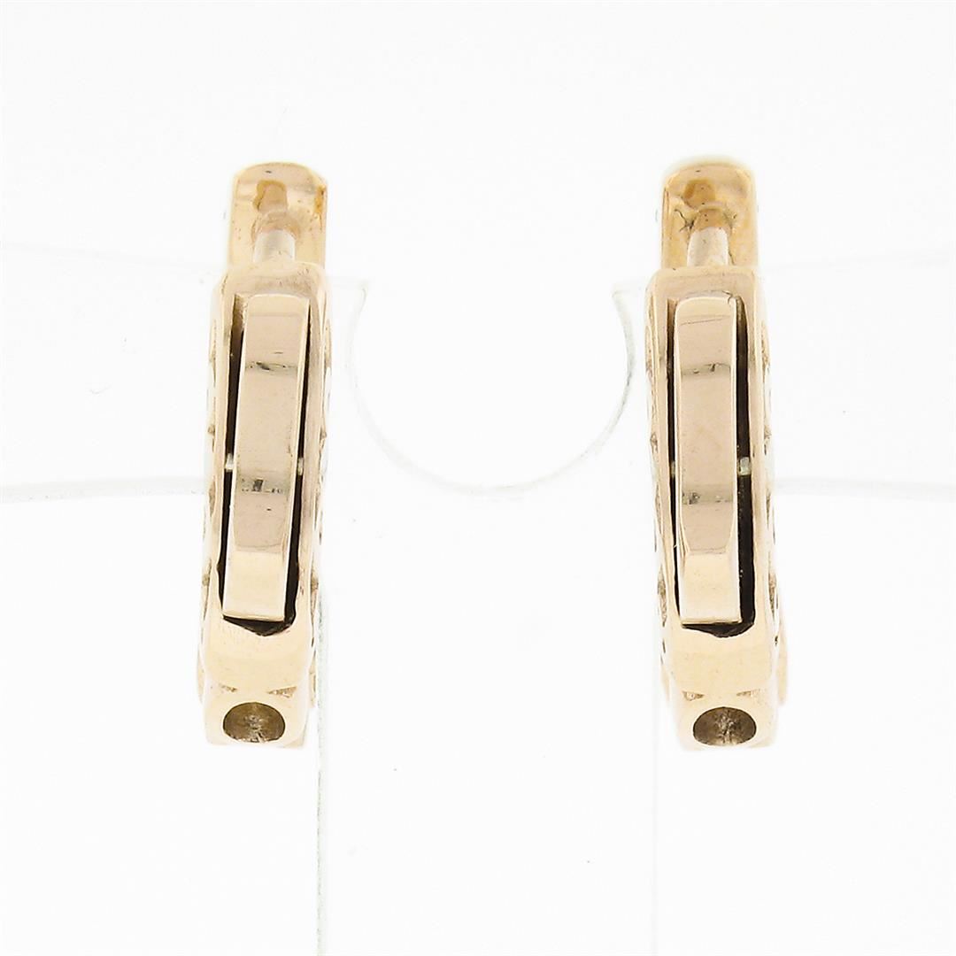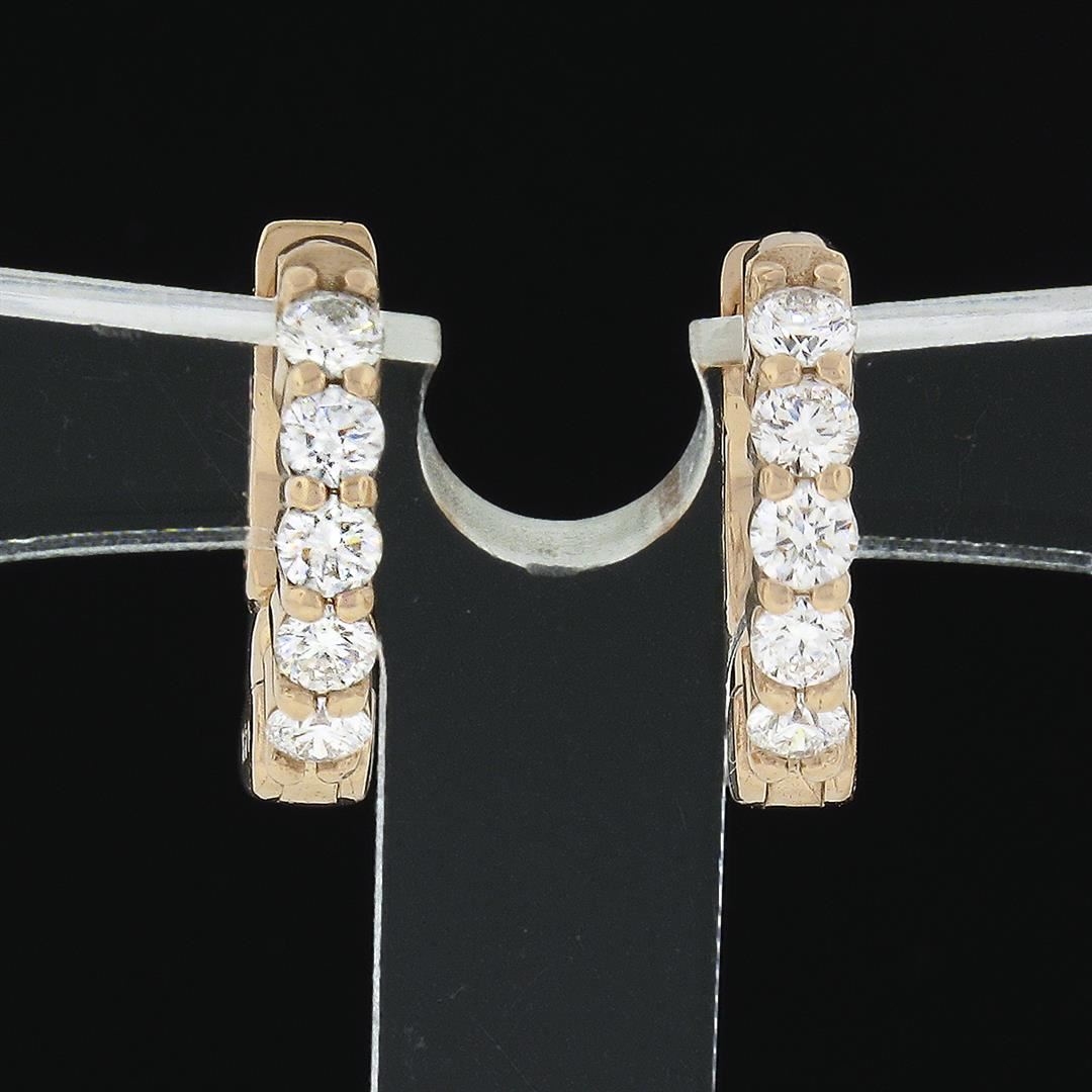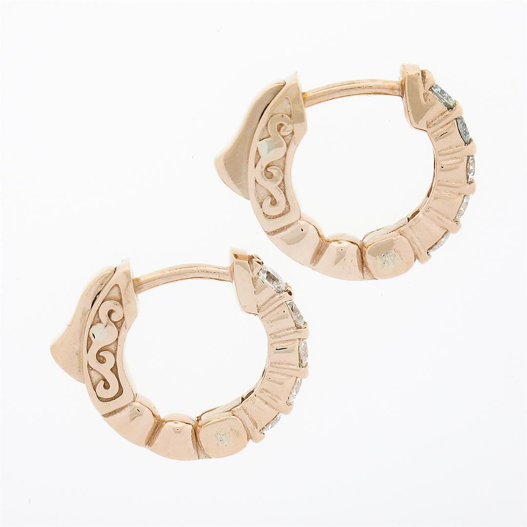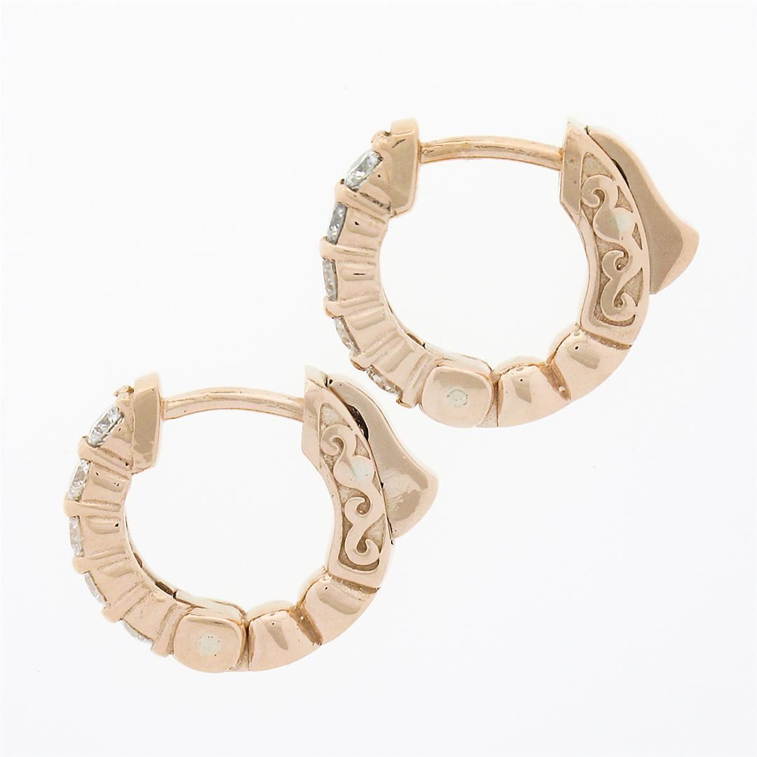 A new pair of solid 14k rose gold hoop earrings, with 10 round brilliant cut natural diamonds (G/H - VS1/VS2 ; 0.50ctw). The earrings measure approximately 12.5x2.40mm and weigh a total of 3.20 grams.