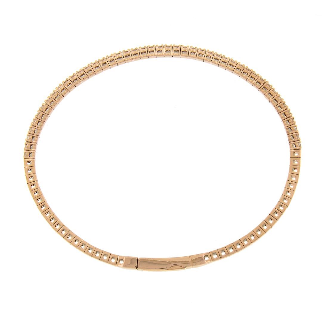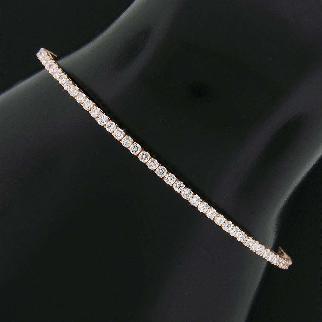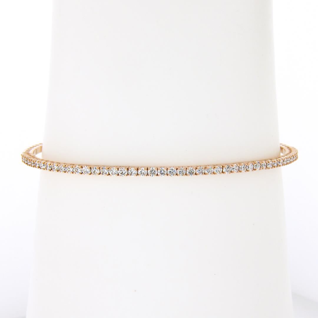 A new solid 14k rose gold bangle bracelet, with 45 round cut natural diamonds (F/G ; VVS2/VS1 ; 1.14ctw). It weighs a total of 6.48 grams, measures 1.9mm wide, and measures 6.25 inches in length.