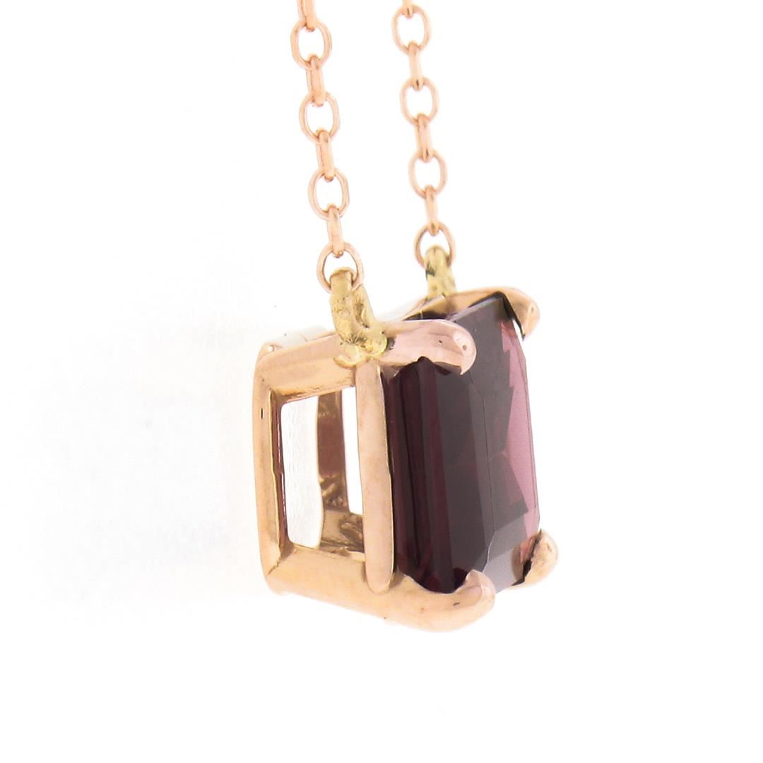 NEW 14k Rose Gold 1.97 ctw Rectangular Step Cut Garnet Solitaire Pendant Necklac