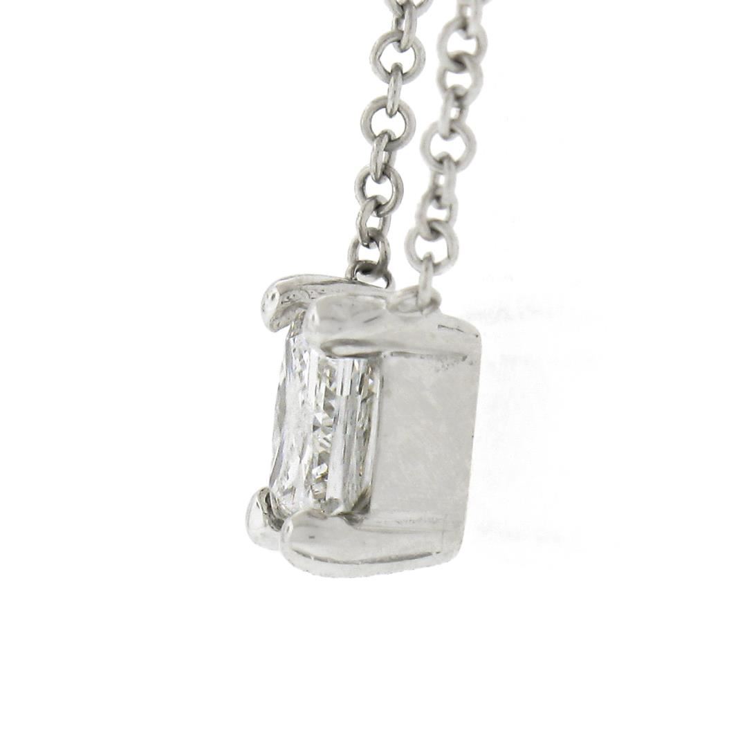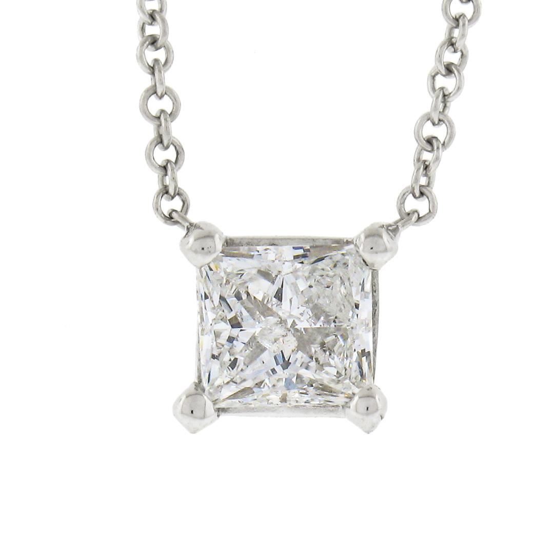 A new solid 14k white gold pendant necklace, with 1 princess cut natural diamond (G - I1 ; 0.48ct). Adjustabel 16 & 18 inch cable link chain, 2.06 grams total weight, pendant measures 5.8x6mm.