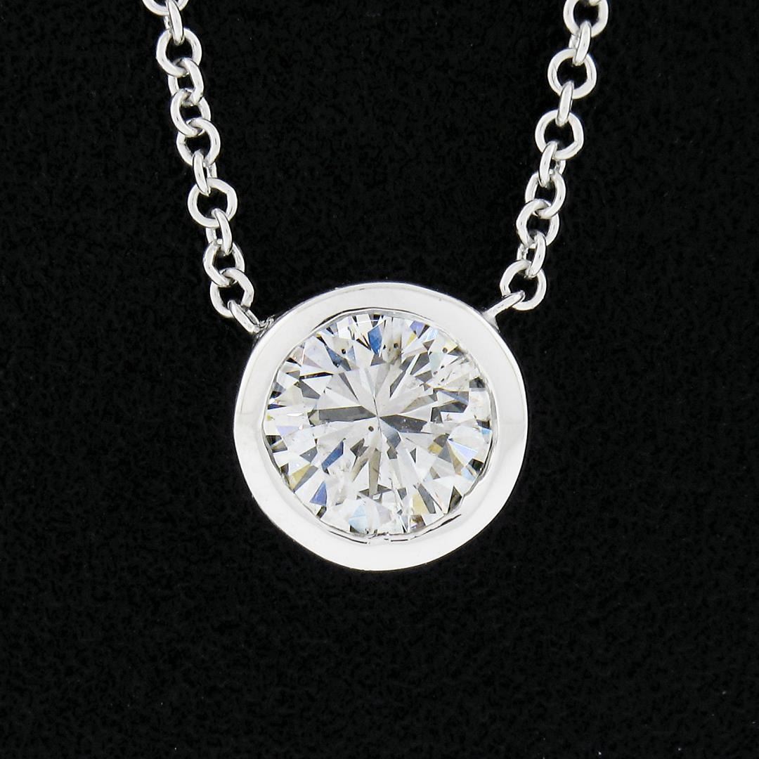 NEW 14k White Gold 0.55 ctw Round Bezel Diamond Solitaire Pendant Adjustable Cha