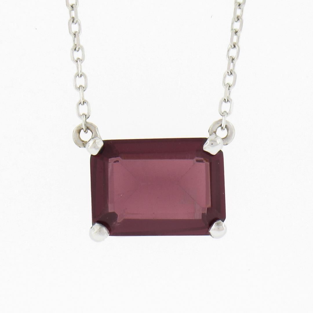 NEW 14k White Gold 1.50 ctw Rectangular Step Cut Garnet Solitaire Pendant Neckla