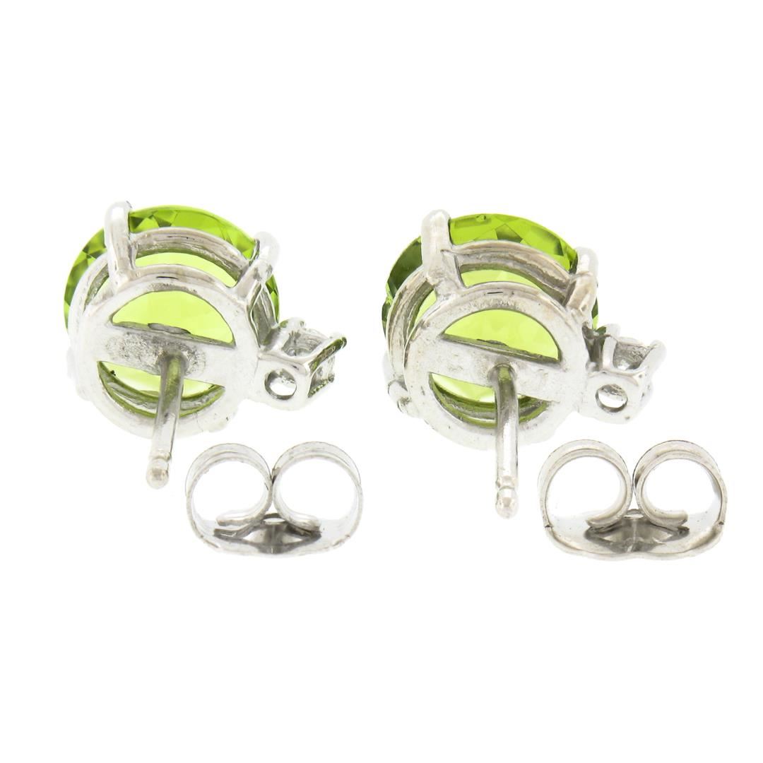 A new solid 14k white gold stud earrings, with 2 round cut natural peridots (7.2mm / 2.80ctw ), and 2 round brilliant cut natural diamonds (G/H - SI1/SI2 ; 0.06ctw ). The earrings measure approximately 9.6x7.2mm and weigh a total of 1.93 grams.