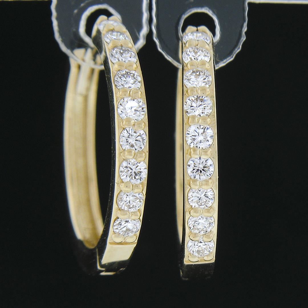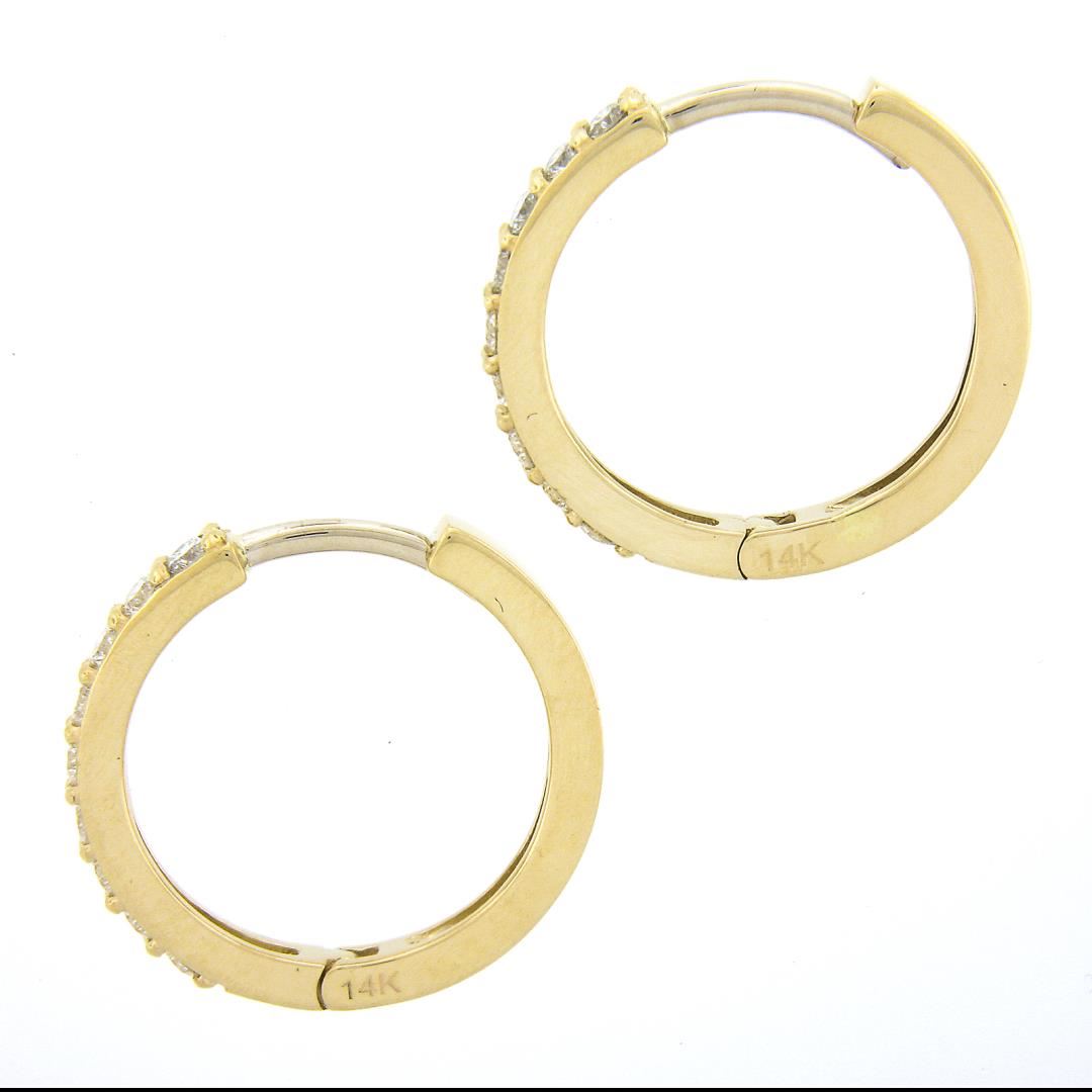 A new solid 14k yellow gold hoop earrings, with 18 round cut natural diamonds (F/G - VS1/VS2 ; 0.32ctw). The earrings measure approximately 15.4x2.1mm and weigh a total of 2.36 grams.