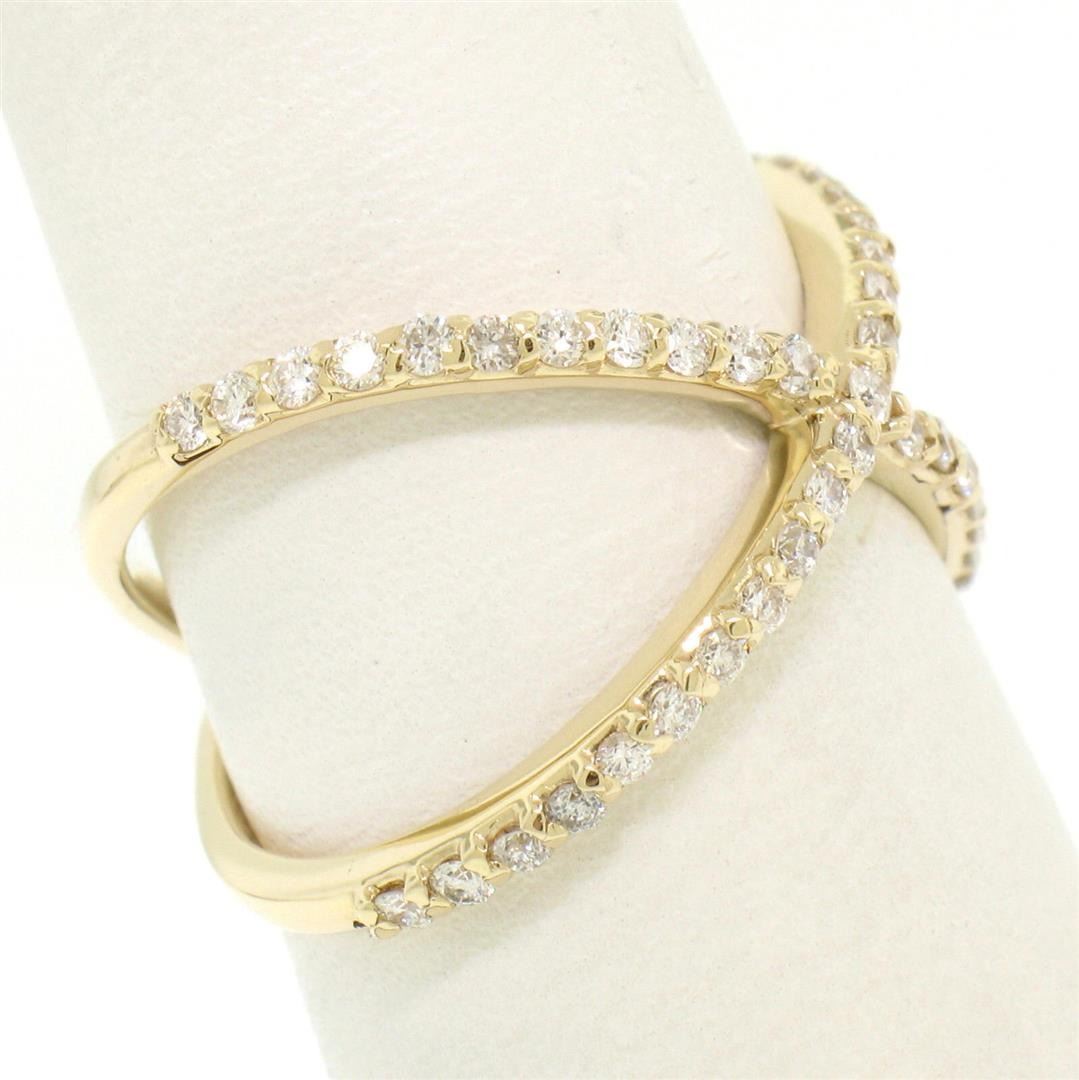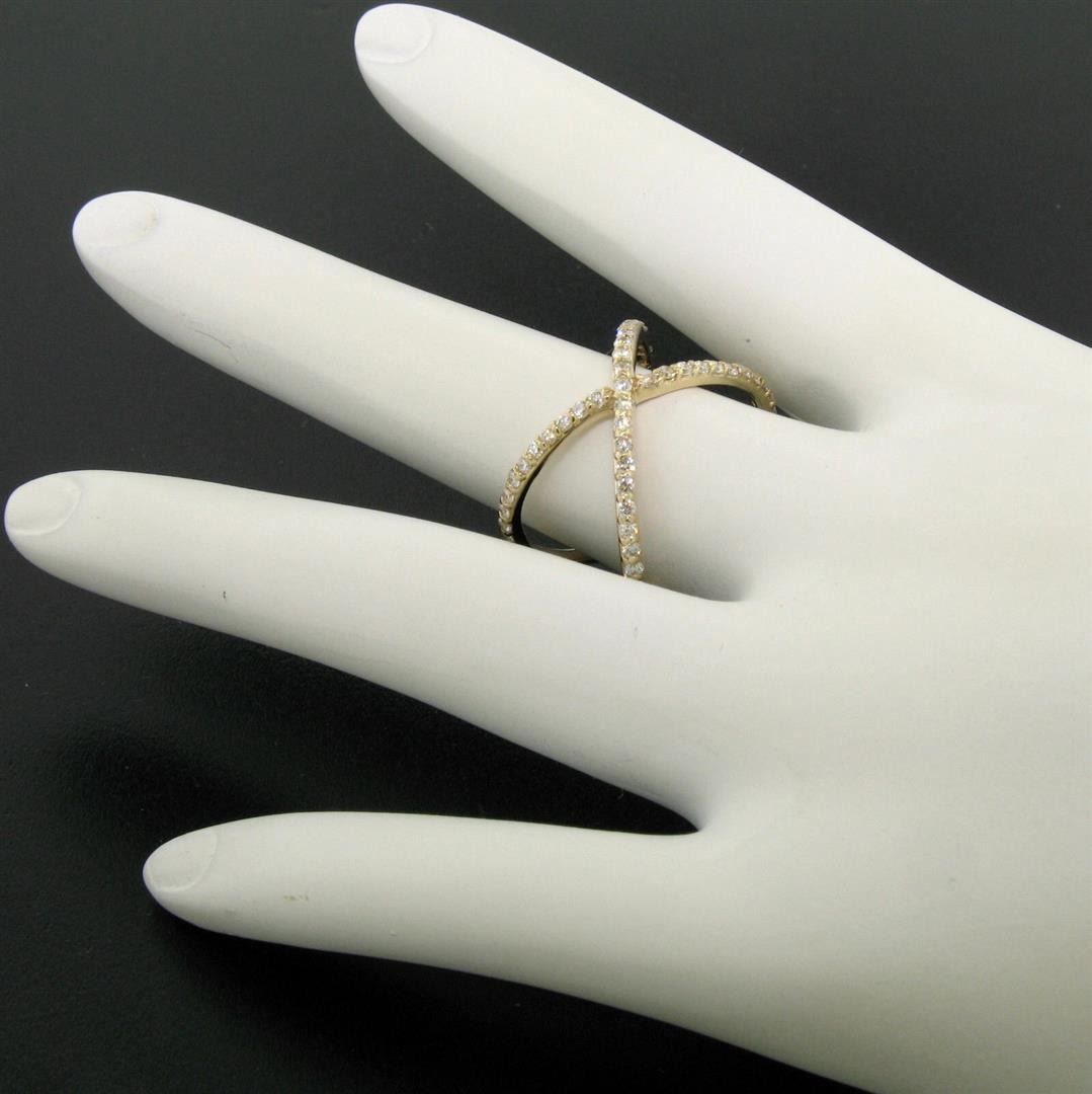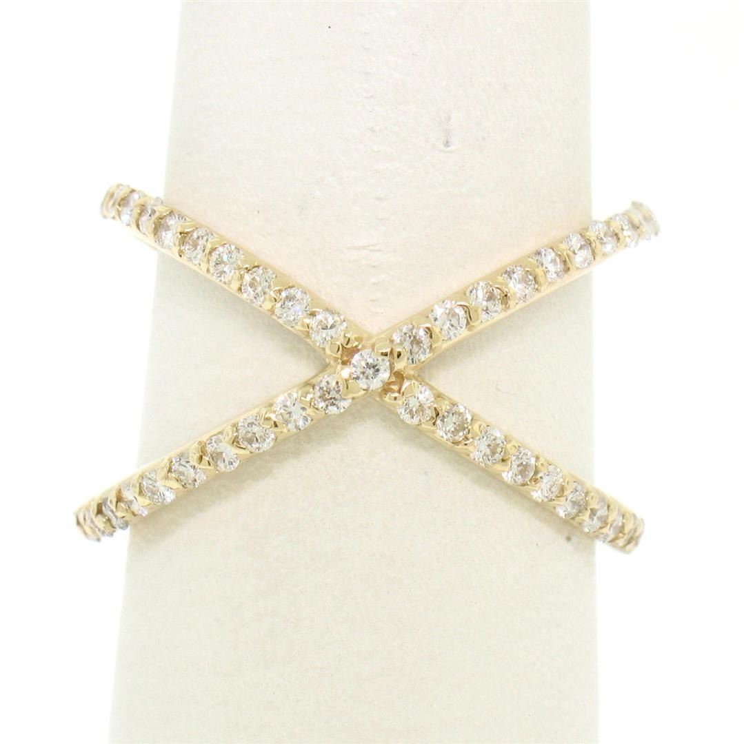 NEW 14k Yellow Gold 0.50 ctw Round Brilliant Diamond Simple X Ex Cross Band Ring