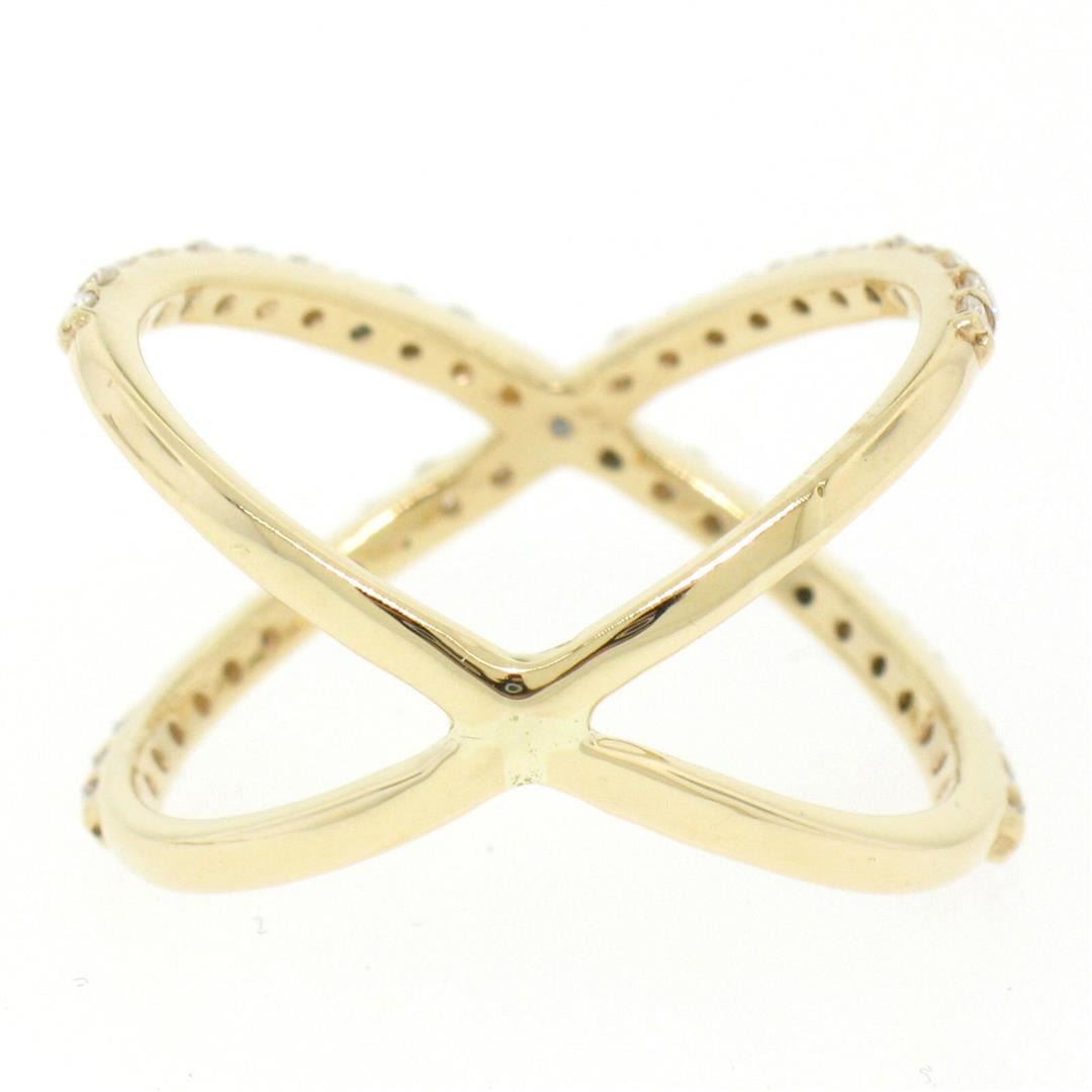 A new solid 14k yellow gold X ring, with 45 round brilliant cut naural diamonds (G - VS2 ; 0.50ctw). The ring is size 6.25, weighs a total of 2.9 grams, and measures 13.13mm wide.