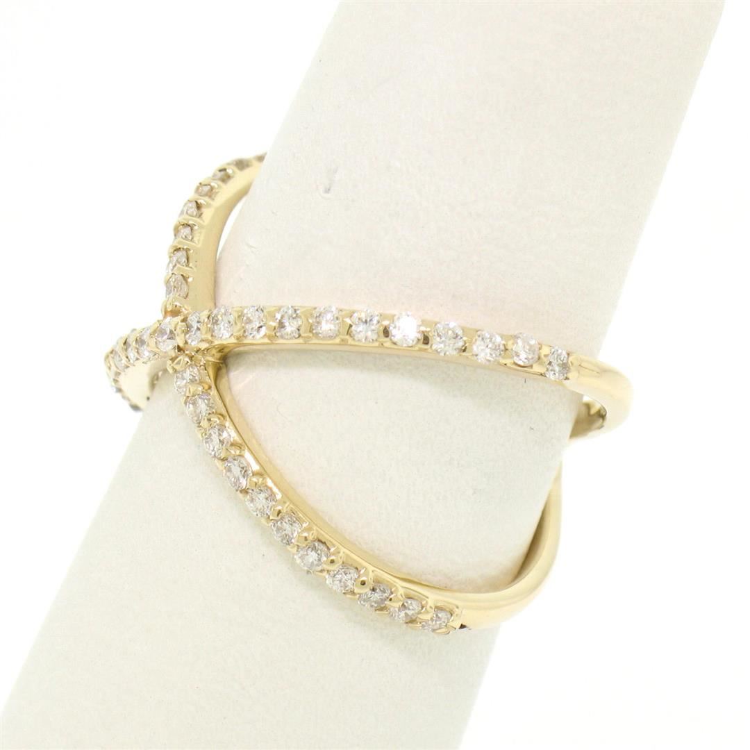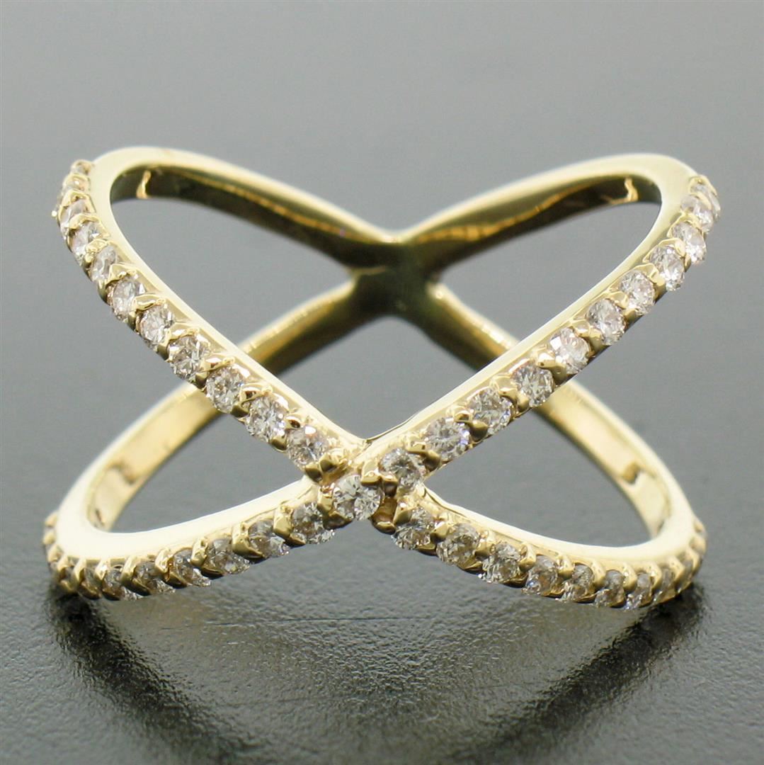 NEW 14k Yellow Gold 0.50 ctw Round Brilliant Diamond Simple X Ex Cross Band Ring