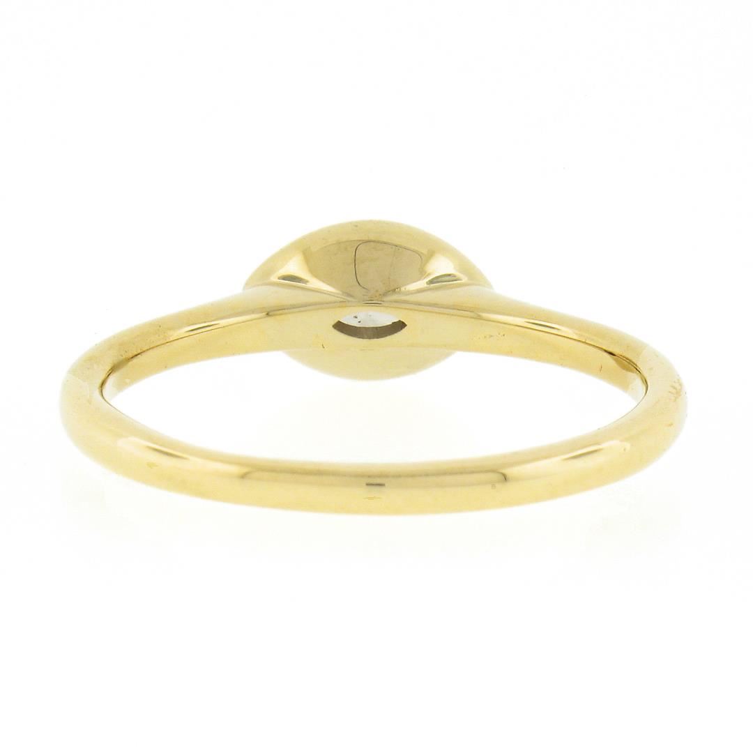 A new solid 14k yellow gold solitaire ring, with 1 marquise cut natural diamond (K - I1 ; 0.53ct). The ring is size 6.5, weighs a total of 2.33 grams, and measures 5.5mm wide.