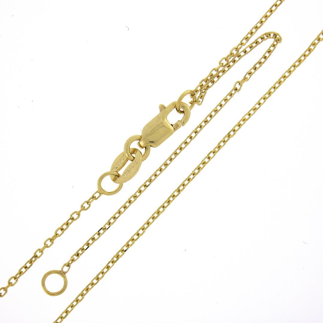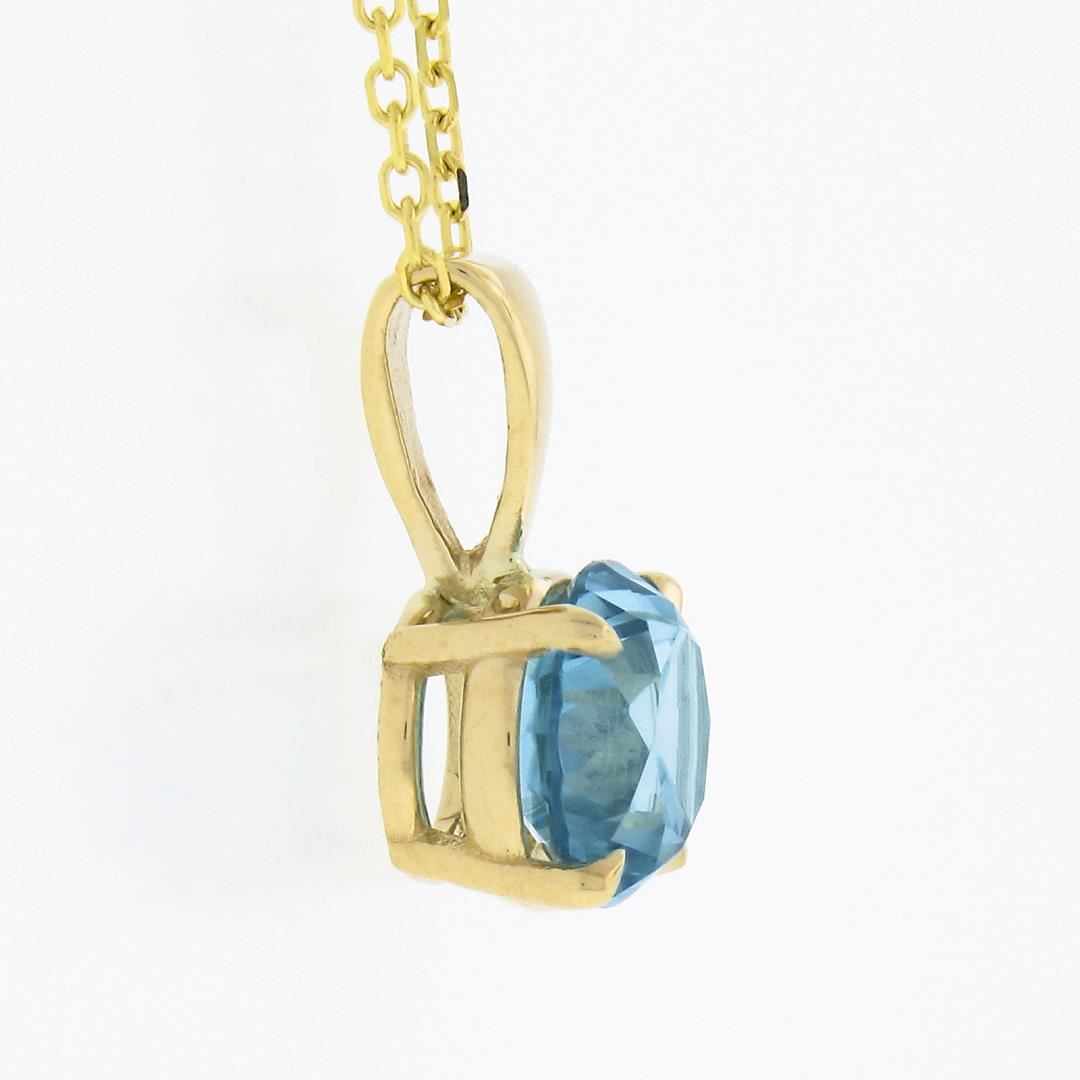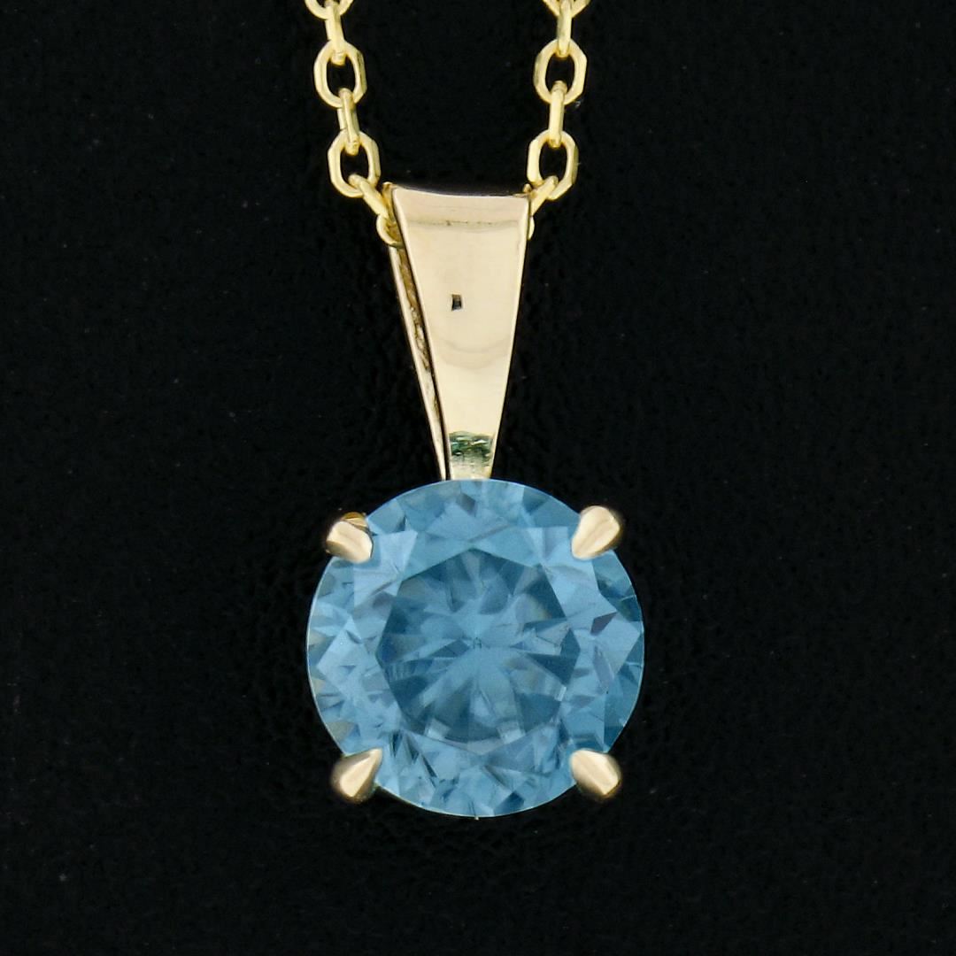 A new solid 14k yellow gold pendant necklace, with 1 round cut natural zircon (1.35ct). Adjustable 16 or 18 inch cable link chain, 1.77 grams total weight, pendant measures 11.5x6mm.
