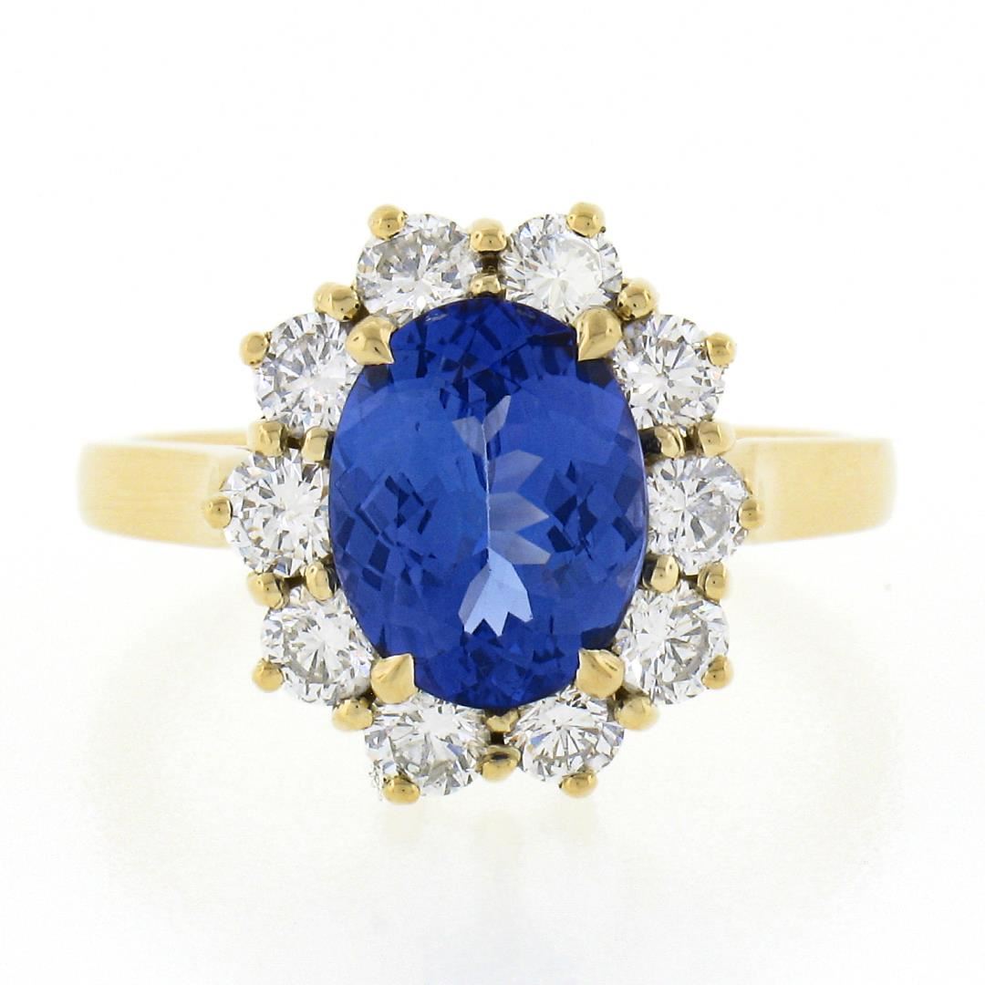 NEW 14k Yellow Gold 2.86 ctw Oval Violet Blue Tanzanite Round Diamond Halo Ring