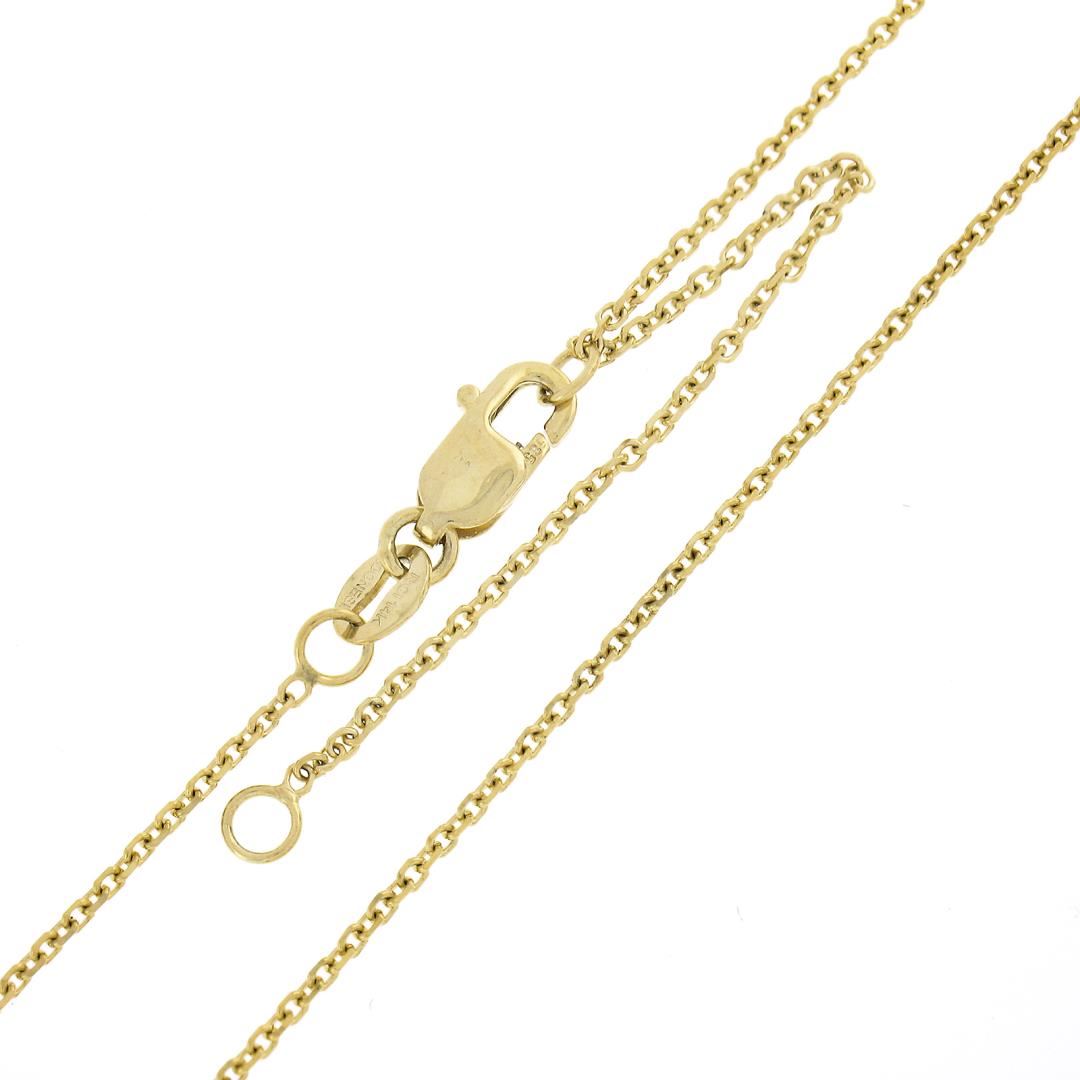 A new solid 14k yellow gold pendant necklace, with 1 emerald cut natural amethyst (14.6x11.4mm). 18.5 inch cable link chain, 5.10 grams total weight, pendant measures 11.8x15.9mm.
