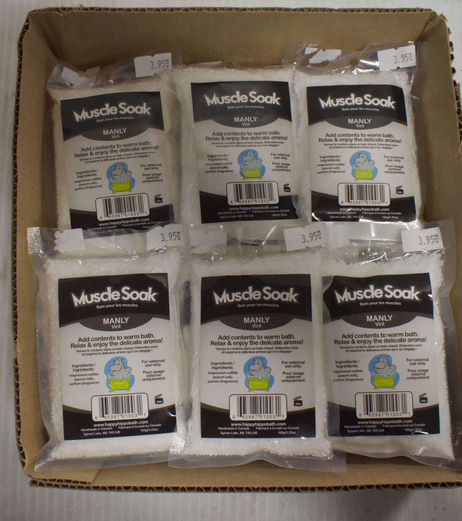 1 FLAT OF 15 INDIVIDUAL PACKS OF 100 GRAM HAPPY HIPPO MANLY MUSCLE SOAK**ALL ITEMS MUST BE REMOVED BY 5PM MONDAY, SEPTEMBER 17, 2022. ALL REMAINING ITEMS WILL BE SUBJECT TO A $6.00 PER DAY STORAGE CHARGE. ANY ITEMS REMAINING AFTER MONDAY, SEPTEMBER 17, 2022 WILL BE CONSIDERED FORFEITED. NO REFUNDS WILL BE ISSUED FOR FORFEITED ITEMS. TO SCHEDULE A PICK UP APPOINTMENT CLICK HERE
