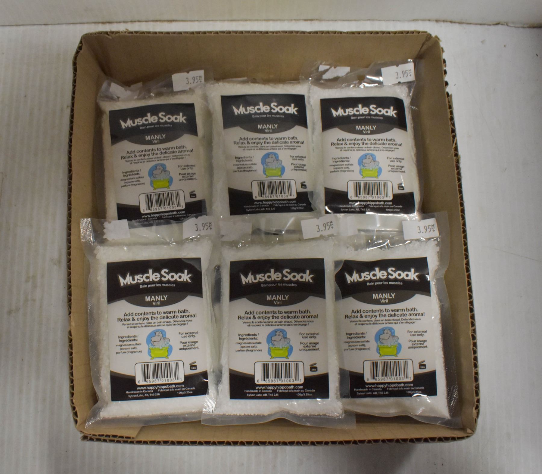 1 FLAT OF 15 INDIVIDUAL PACKS OF 100 GRAM HAPPY HIPPO MANLY MUSCLE SOAK**ALL ITEMS MUST BE REMOVED BY 5PM MONDAY, SEPTEMBER 17, 2022. ALL REMAINING ITEMS WILL BE SUBJECT TO A $6.00 PER DAY STORAGE CHARGE. ANY ITEMS REMAINING AFTER MONDAY, SEPTEMBER 17, 2022 WILL BE CONSIDERED FORFEITED. NO REFUNDS WILL BE ISSUED FOR FORFEITED ITEMS. TO SCHEDULE A PICK UP APPOINTMENT CLICK HERE