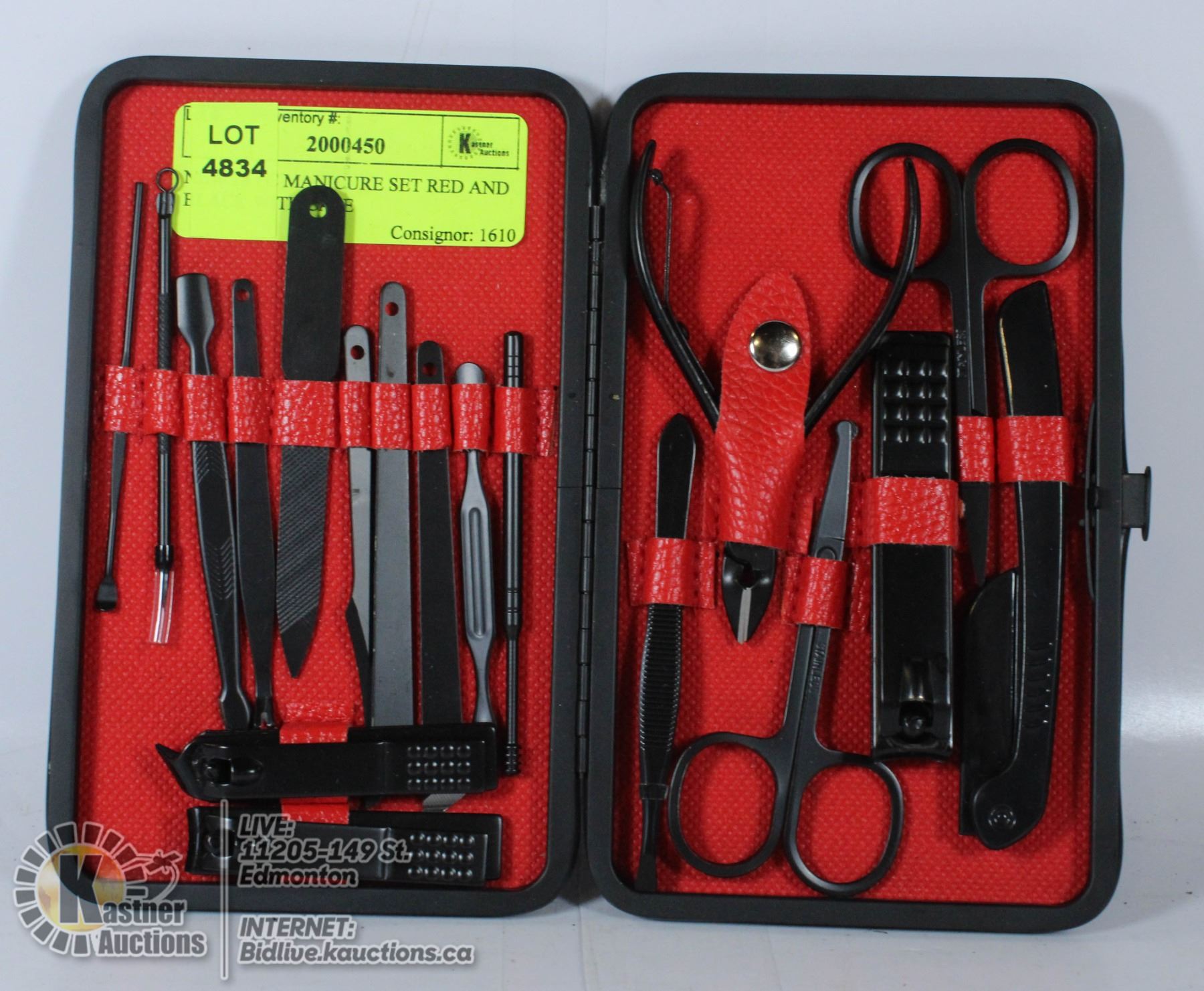 NEW 18 PC MANICURE SET RED AND BLACK WITH CASE