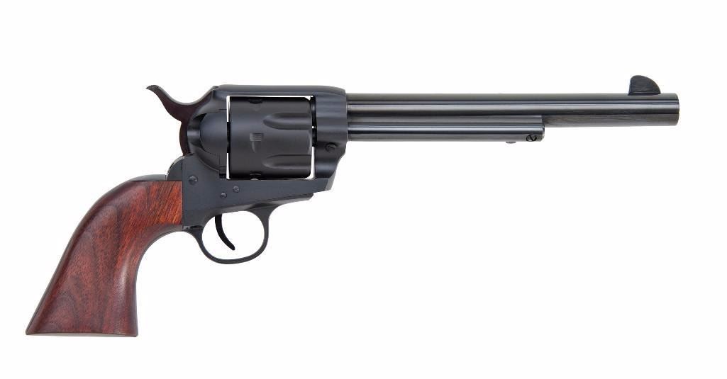 The Rawhide series offers today's single action shooters quality features at an affordable price. This revolver's matte black finish is attractive and provides excellent corrosion resistance. Our transfer bar system provides the highest level of safety offered in an 1873 single action firearm. This model is .22 LR and .22 MAG, has a walnut grip, and a 7.5" matte black barrel. This is a 10-shot revolver and it comes with 2 cylinders. Traditions single action revolvers are made by Pietta.
