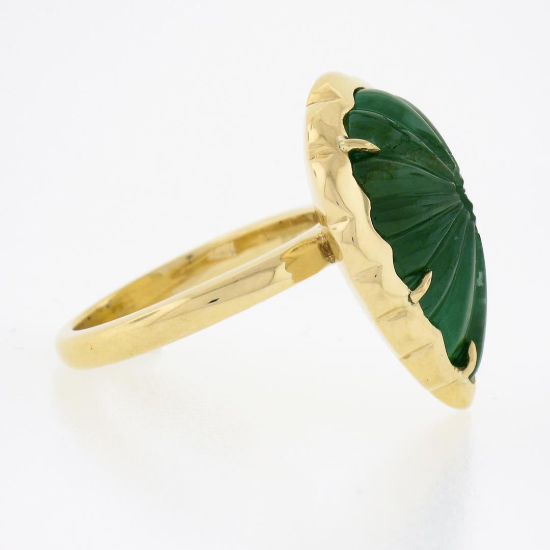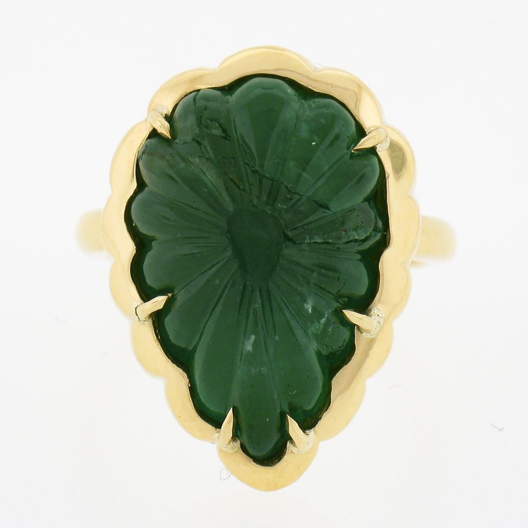 NEW 18K Gold 9.99 ctw GIA Carved Scalloped Pear Cabochon Emerald Cocktail Ring