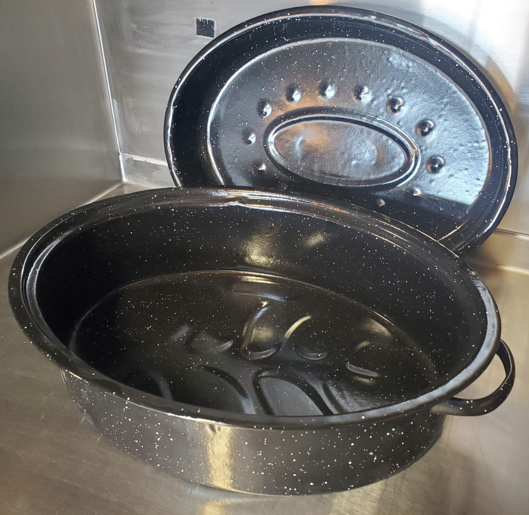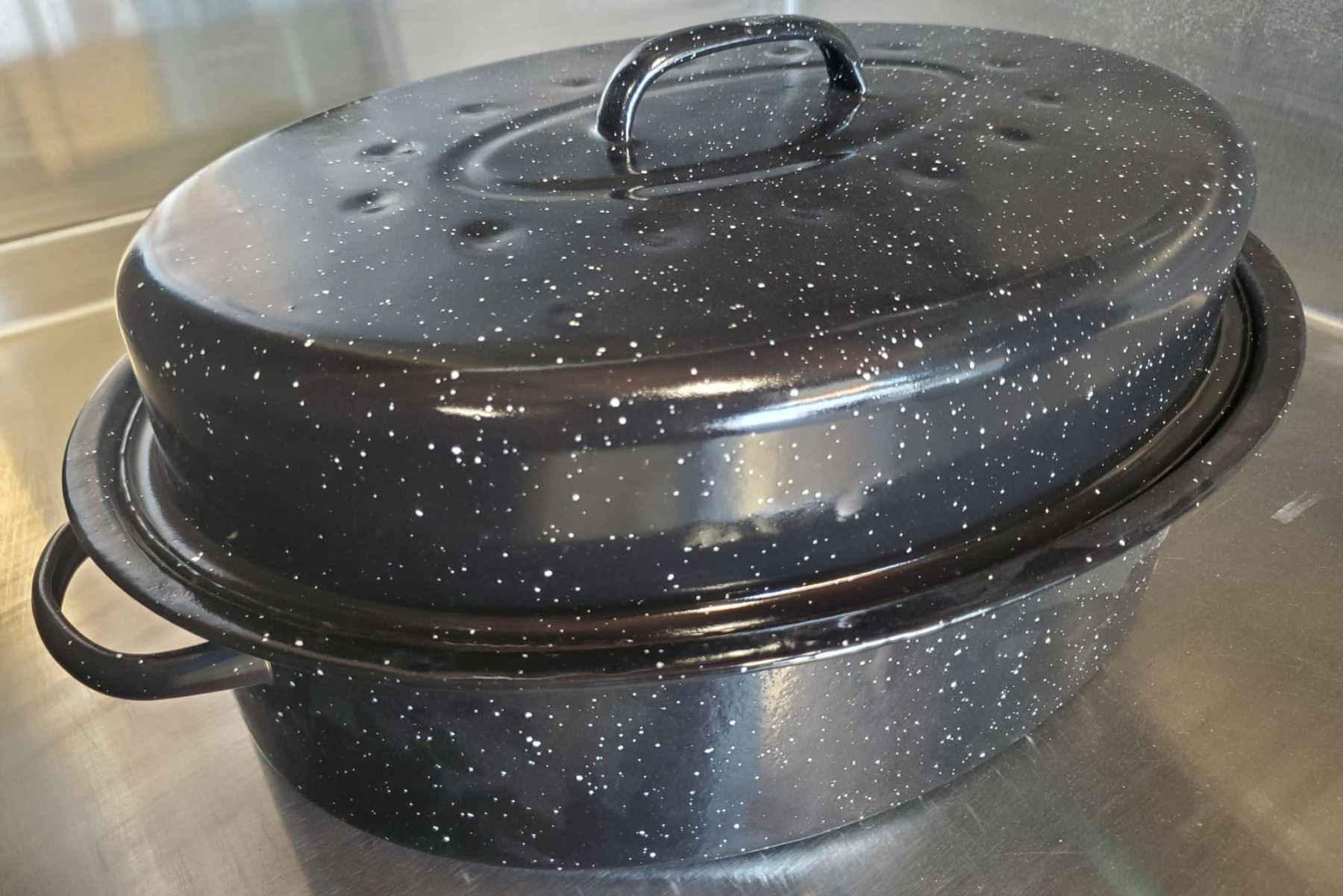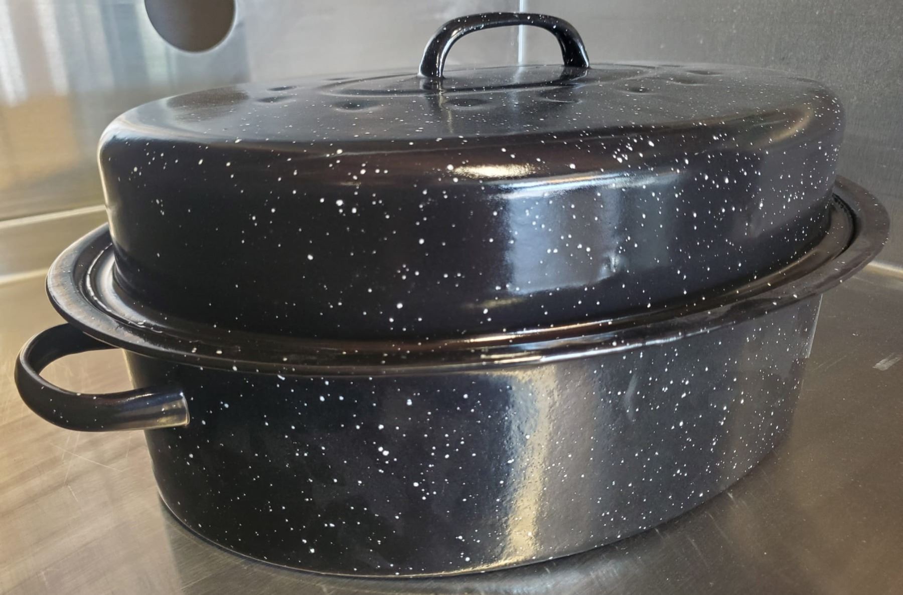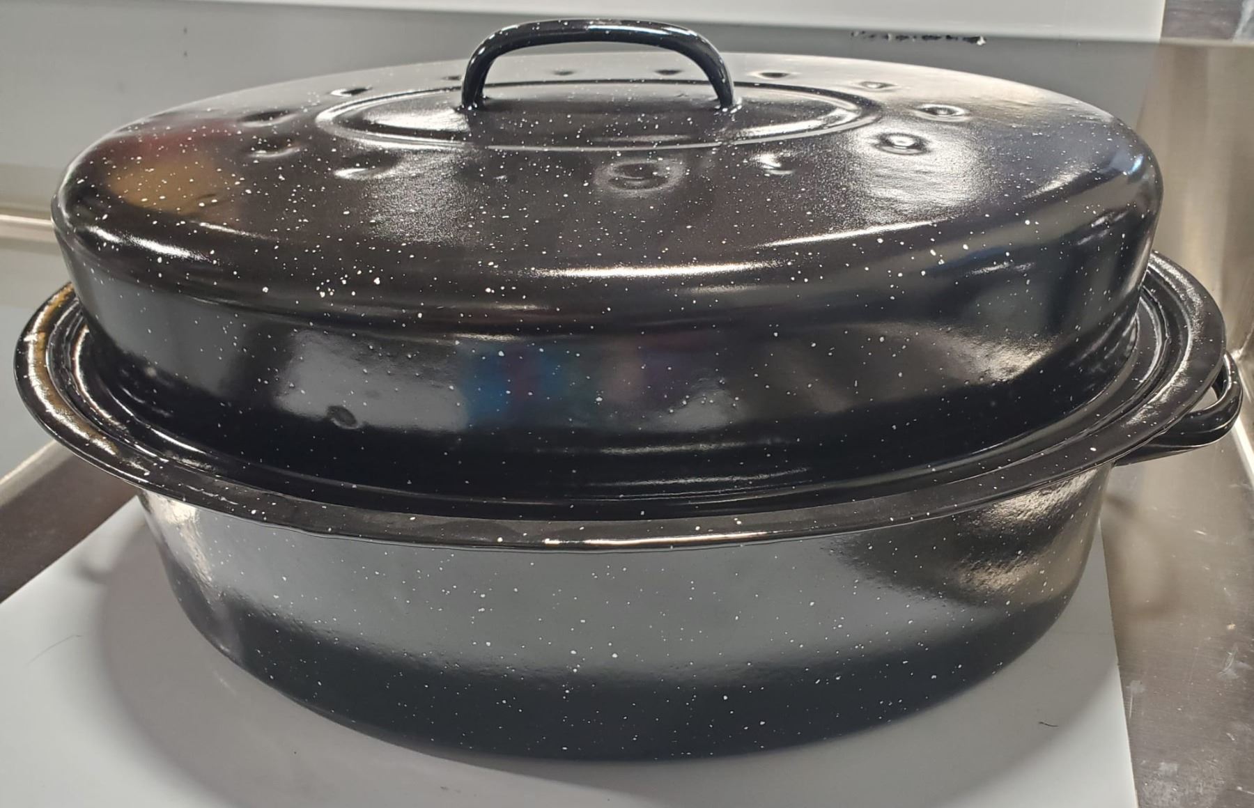 NEW 18LBS CARBON STEEL ENAMELED ROASTER W/ LID