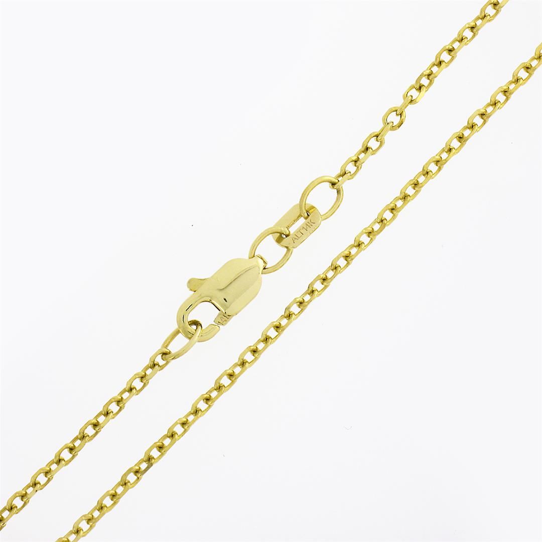 A new solid 18k yellow gold pendant necklace, with 1 gia certified pead cut natural emerald (2.14ct). 18 inch cable link chain, 4.10 grams total weight, pendant measures 18.90x9.25mm. Comes with all original relevant certifications.