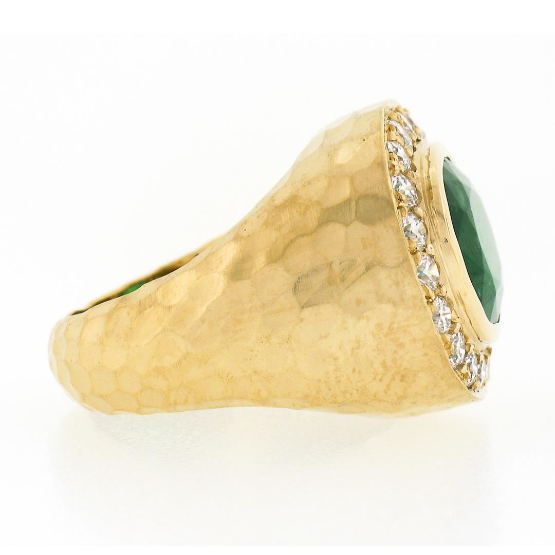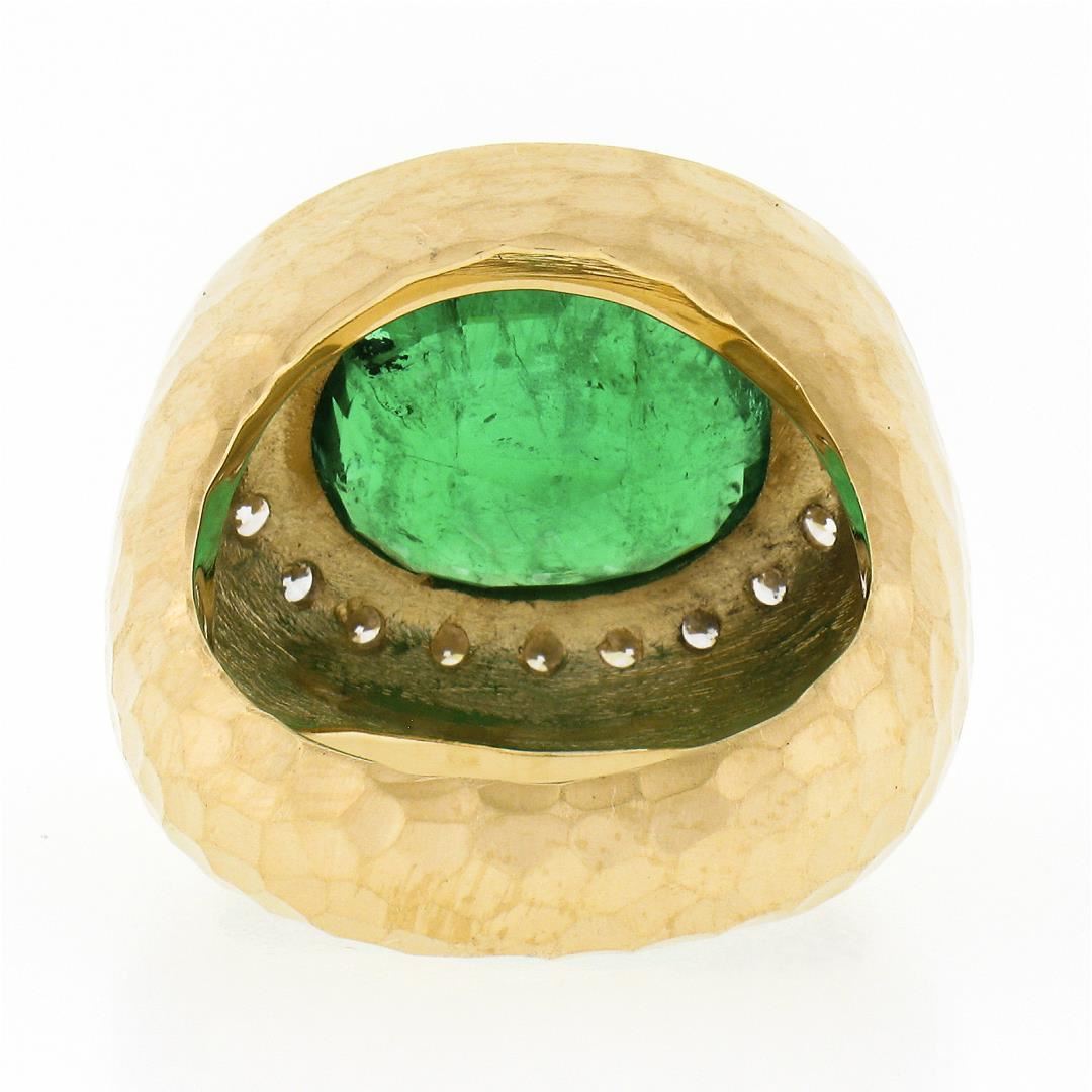 A new solid 18k yellow gold ring, with 1 GIA graded oval emerald (6.55ct ), and 20 round brilliant cut natural diamonds (E/F - VS1/VS2 ; 1.15ctw). The ring is size 6.5, weighs a total of 20.46 grams, and measures 18.2mm wide. Comes with all original relevant certifications.